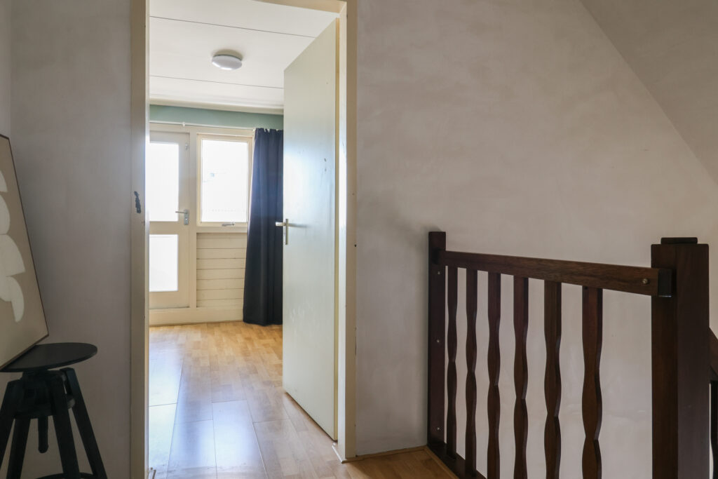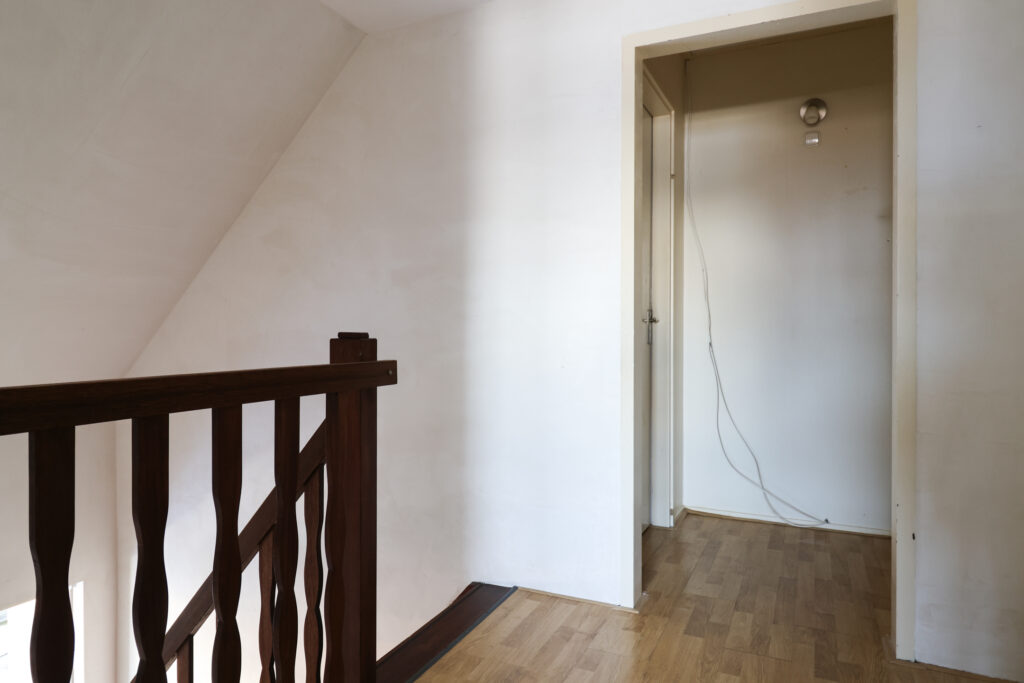 Eerste verdieping: Overloop met toegang tot drie ruime slaapkamers, waarvan één met toegang tot een inpandig balkon. Daarnaast is er via de overloop een ruime berging bereikbaar, waar al aansluitingen zijn aangebracht voor het realiseren van extra sanitair.