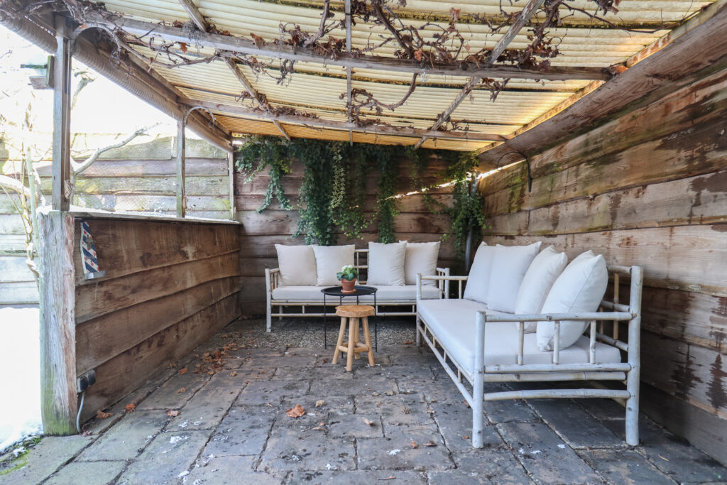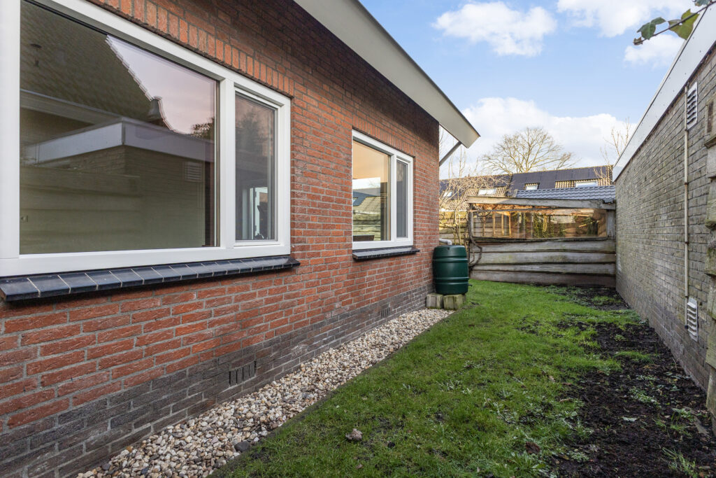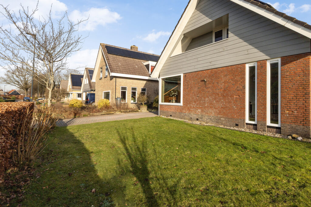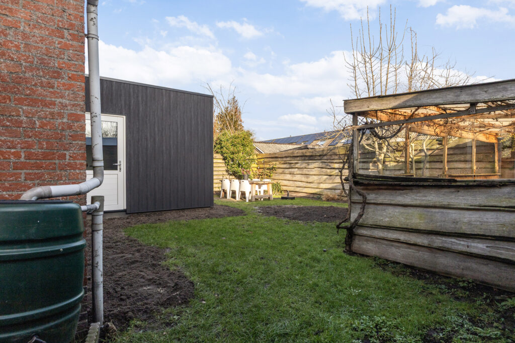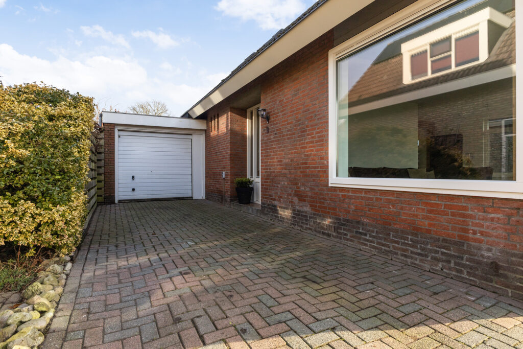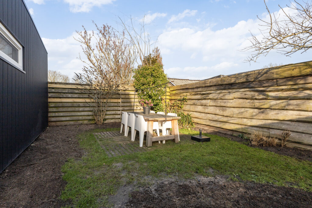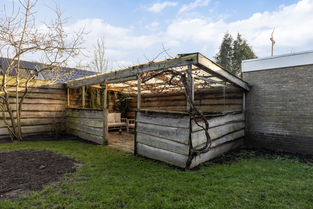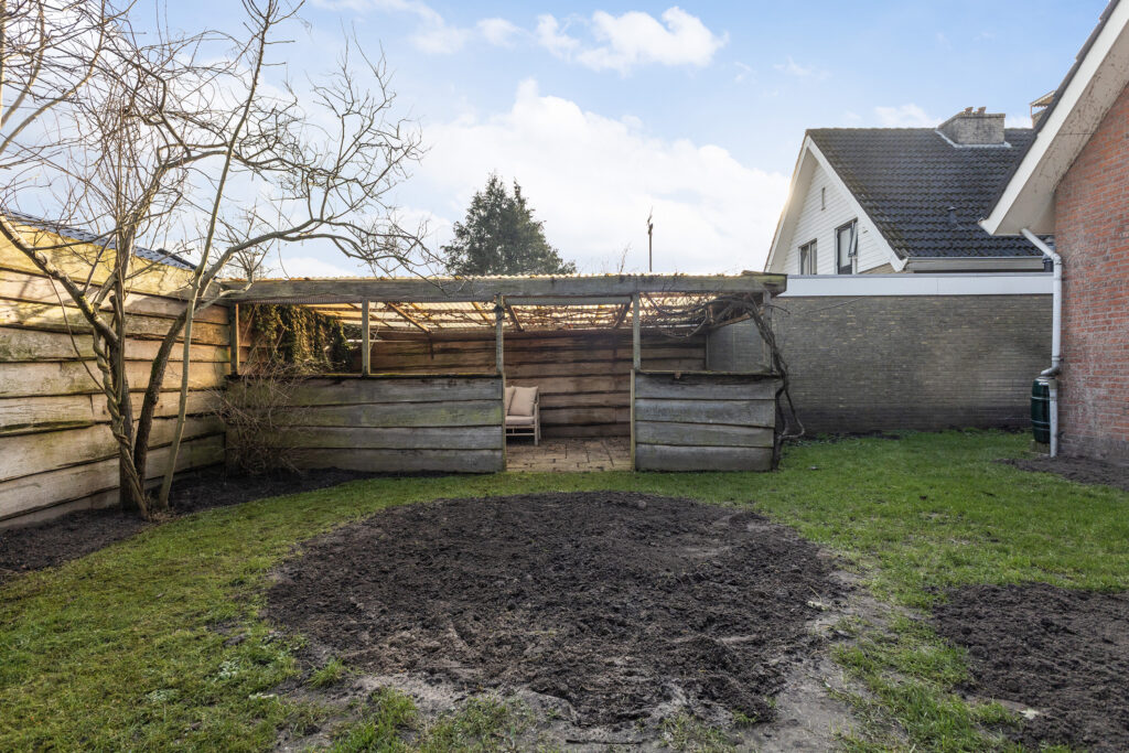 Tuin: De woning beschikt over een beschutte tuin rondom. Aan de voorzijde bevindt zich een ruime oprit met plek voor meerdere auto’s. De achtertuin is knus en sfeervol ingericht en voorzien van een houten overkapping.