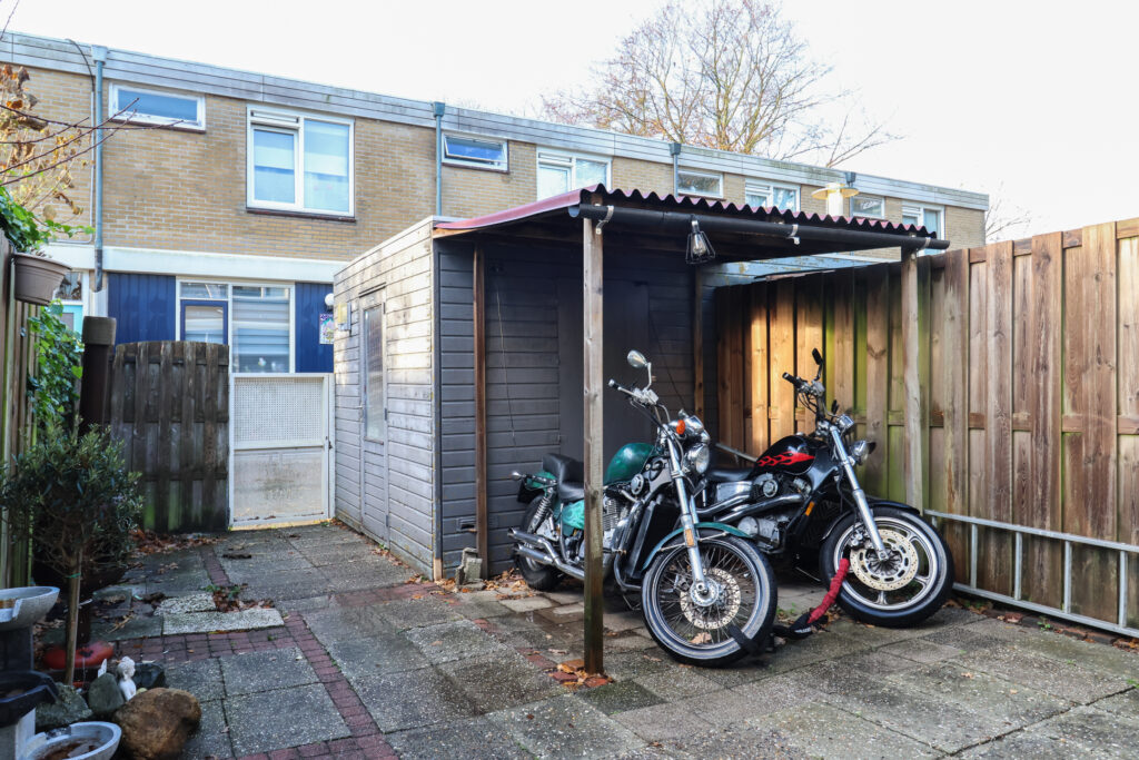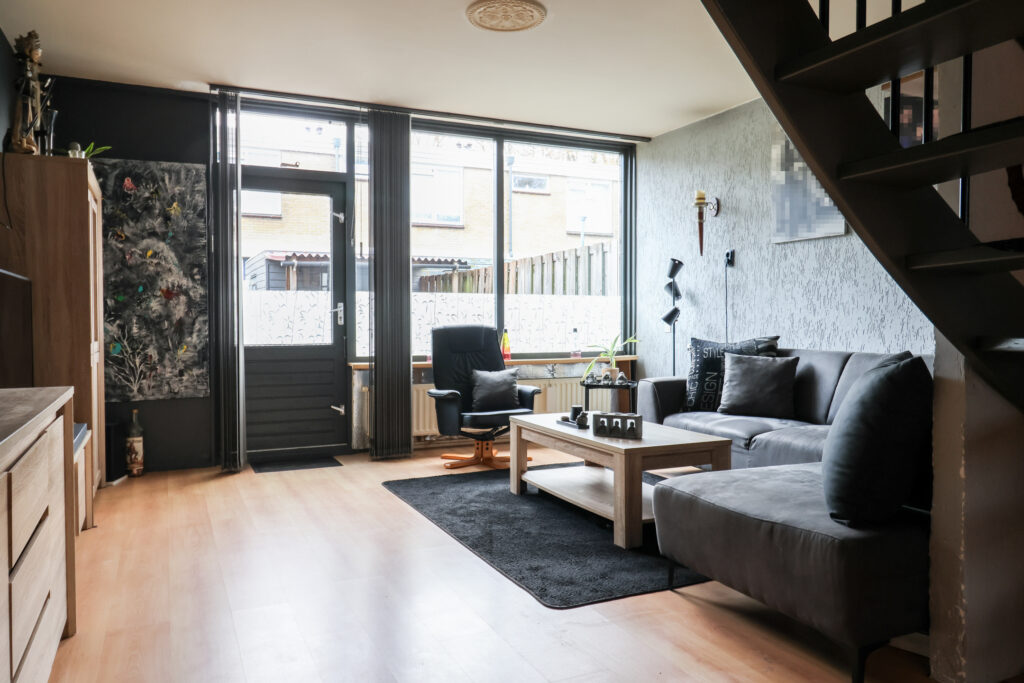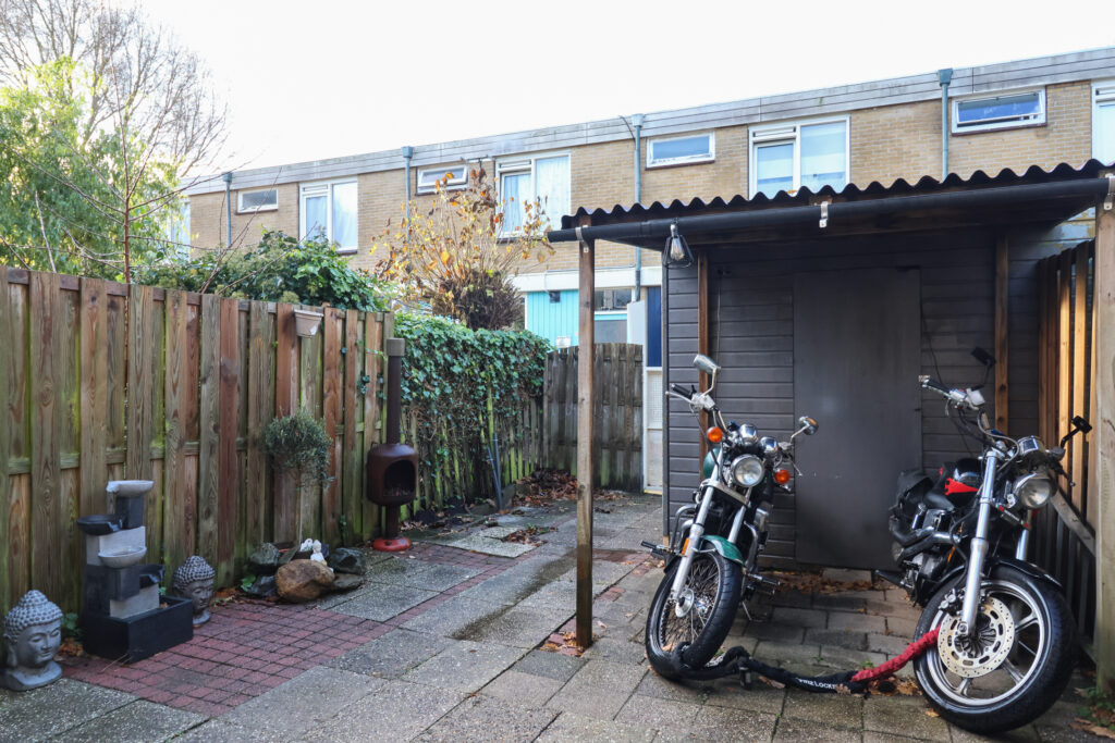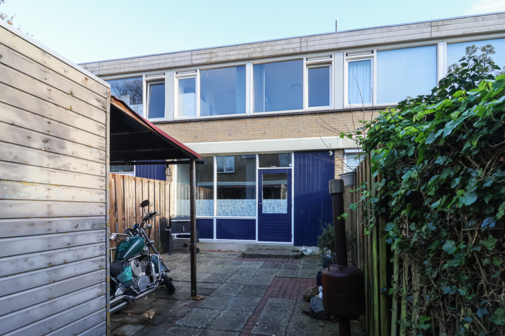 Begane grond: entree/hal met bergkast, meterkast en toilet, open keuken in hoekopstelling, vaste trap naar 1e verdieping, tuingerichte woonkamer met deur naar de achtertuin. De achtertuin bevindt zich op het zonnige westen en beschikt over een houten berging met overkapping en achterom.