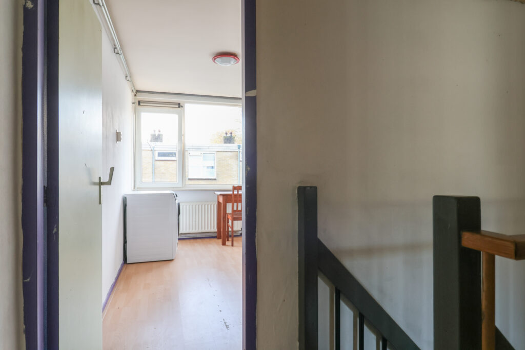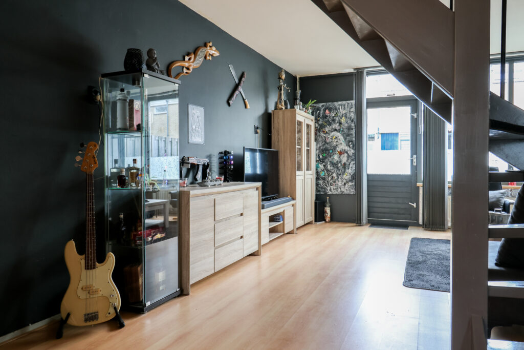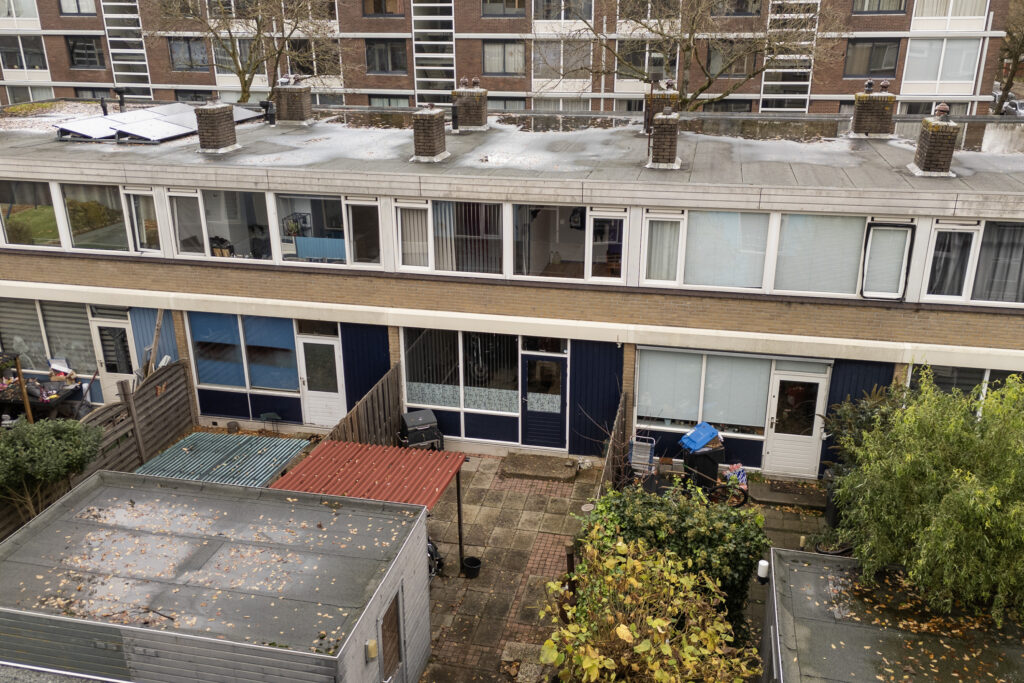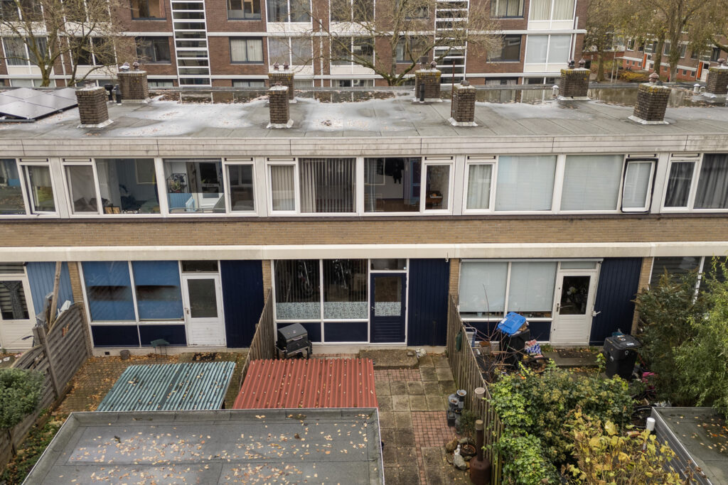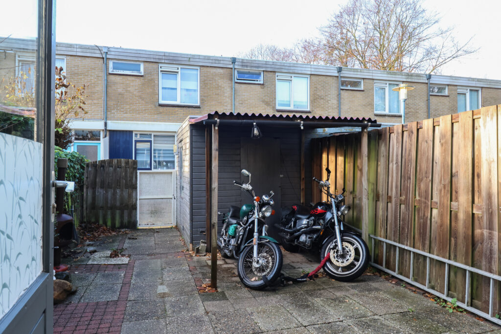 Begane grond: entree/hal met bergkast, meterkast en toilet, open keuken in hoekopstelling, vaste trap naar 1e verdieping, tuingerichte woonkamer met deur naar de achtertuin. De achtertuin bevindt zich op het zonnige westen en beschikt over een houten berging met overkapping en achterom.