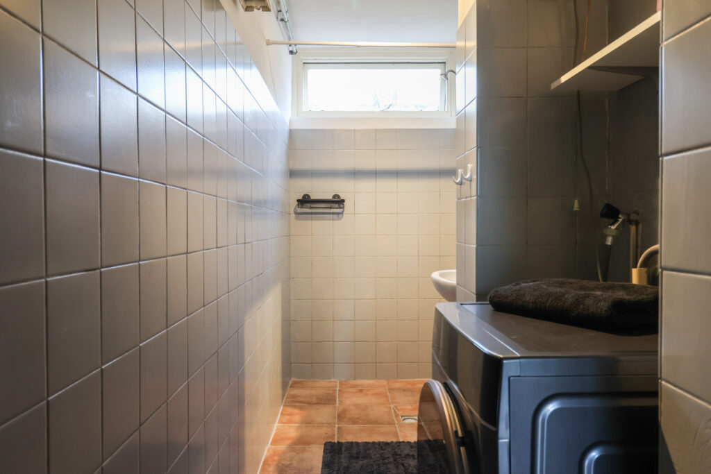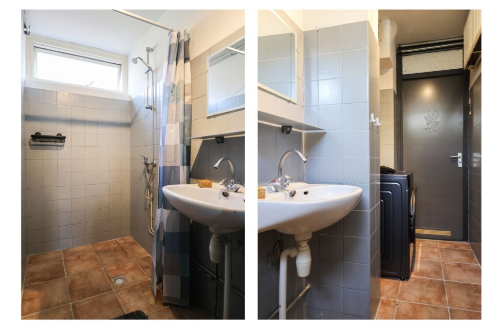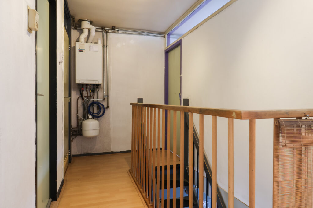 1e verdieping: overloop met c.v. opstelling, 3 ruime slaapkamers en badkamer met wasmachine opstelling, wastafel en douche.