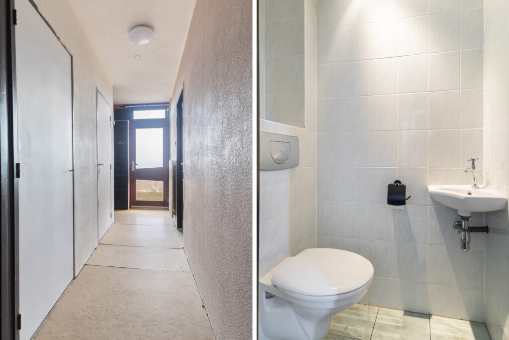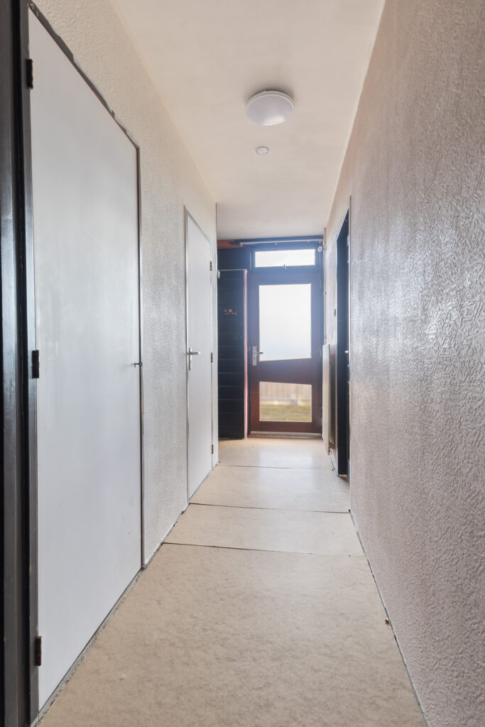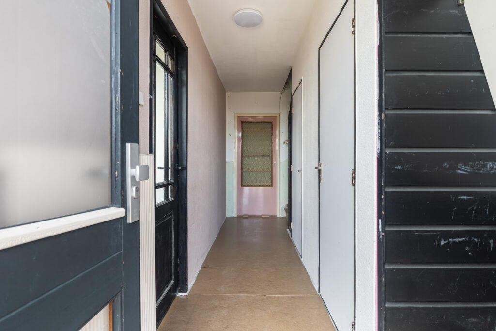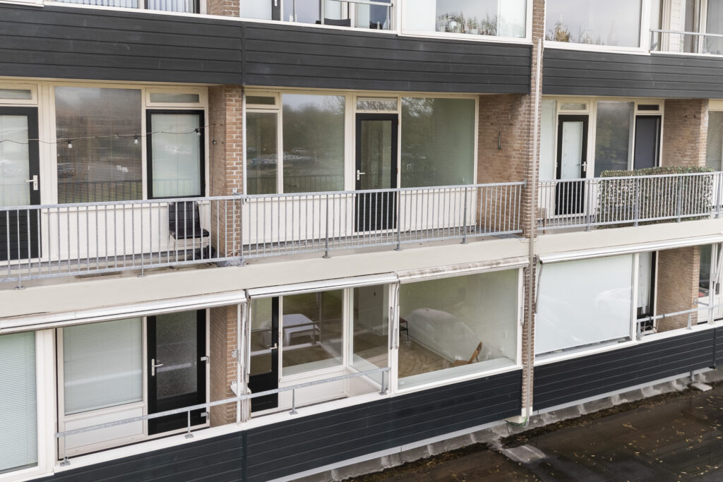 Verzorgde centrale portiek met toegang tot trappenhal en lift. Via de gezamenlijke galerij met de mogelijkheid voor een (gezamenlijk)terras is het appartement te bereiken.