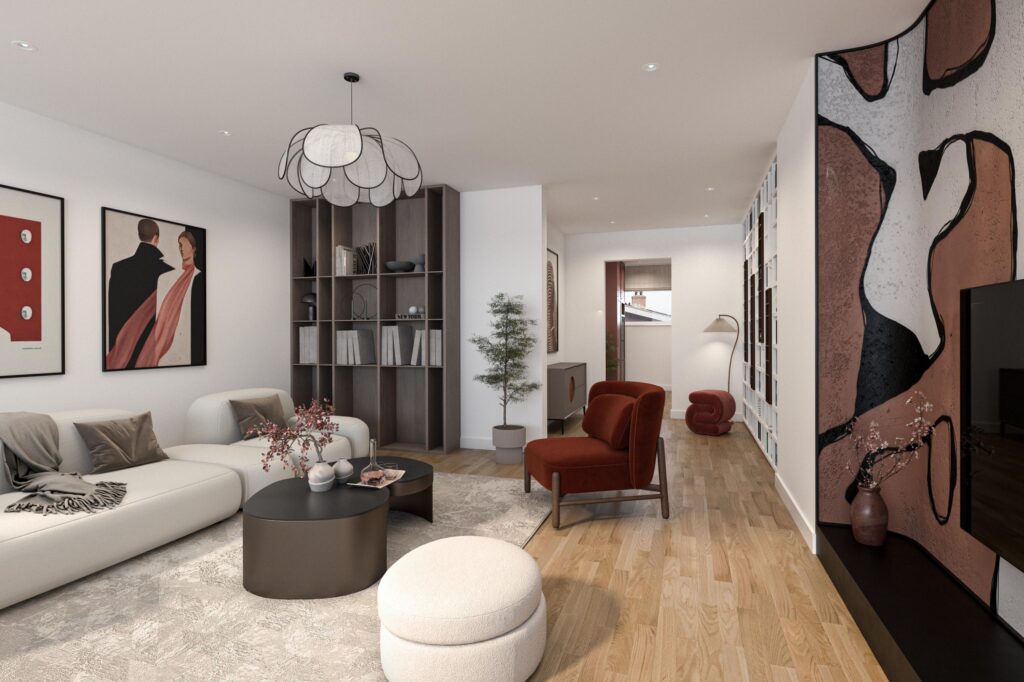 De eerste verbouwwerkzaamheden zijn recentelijke afgerond, dus je kunt gelijk beginnen met verdere afwerking van het appartement. Om je alvast wat inspiratie te geven, hebben we artist impressions laten maken van de woonkamer, keuken en badkamer.