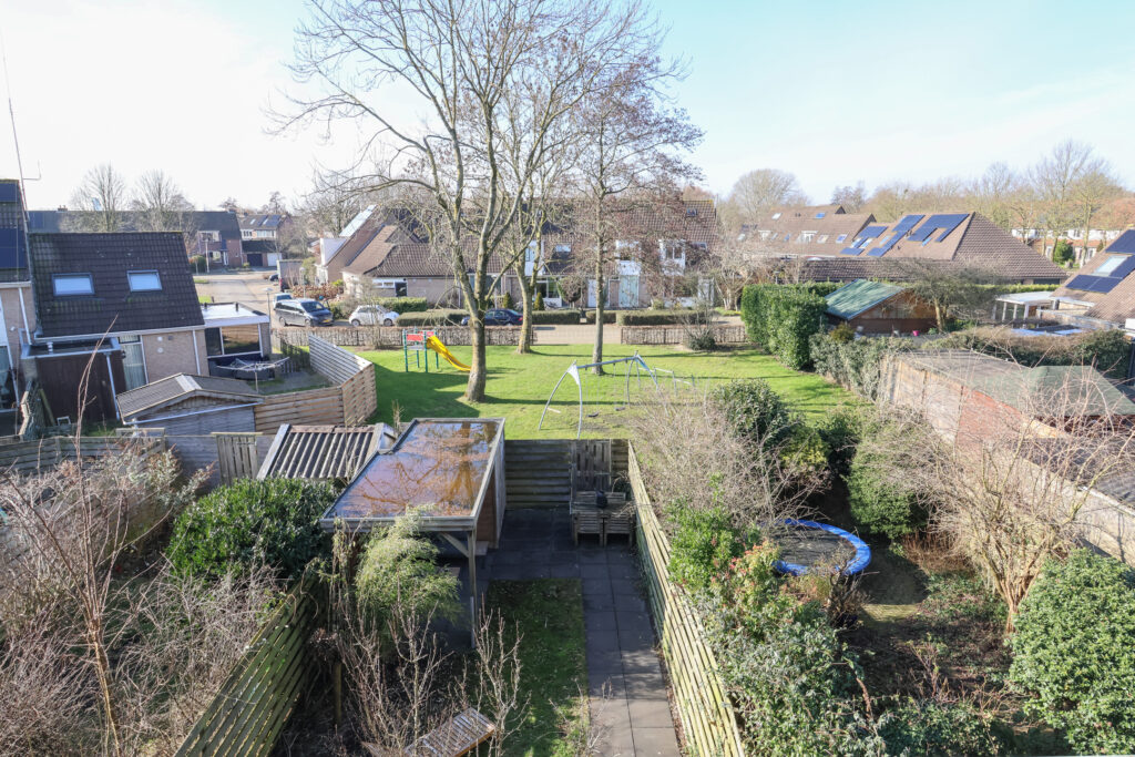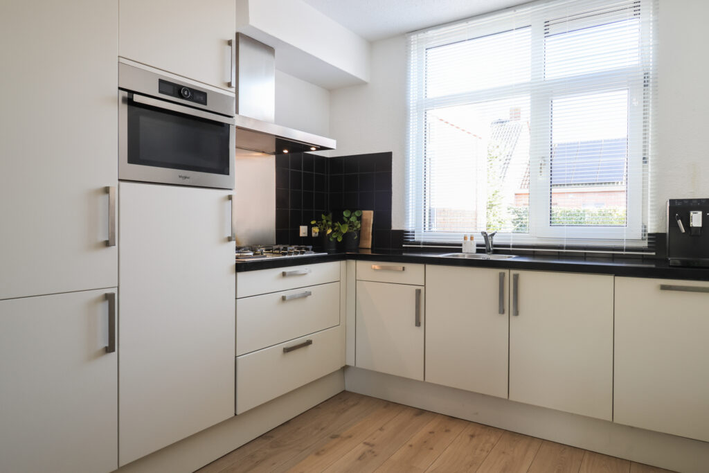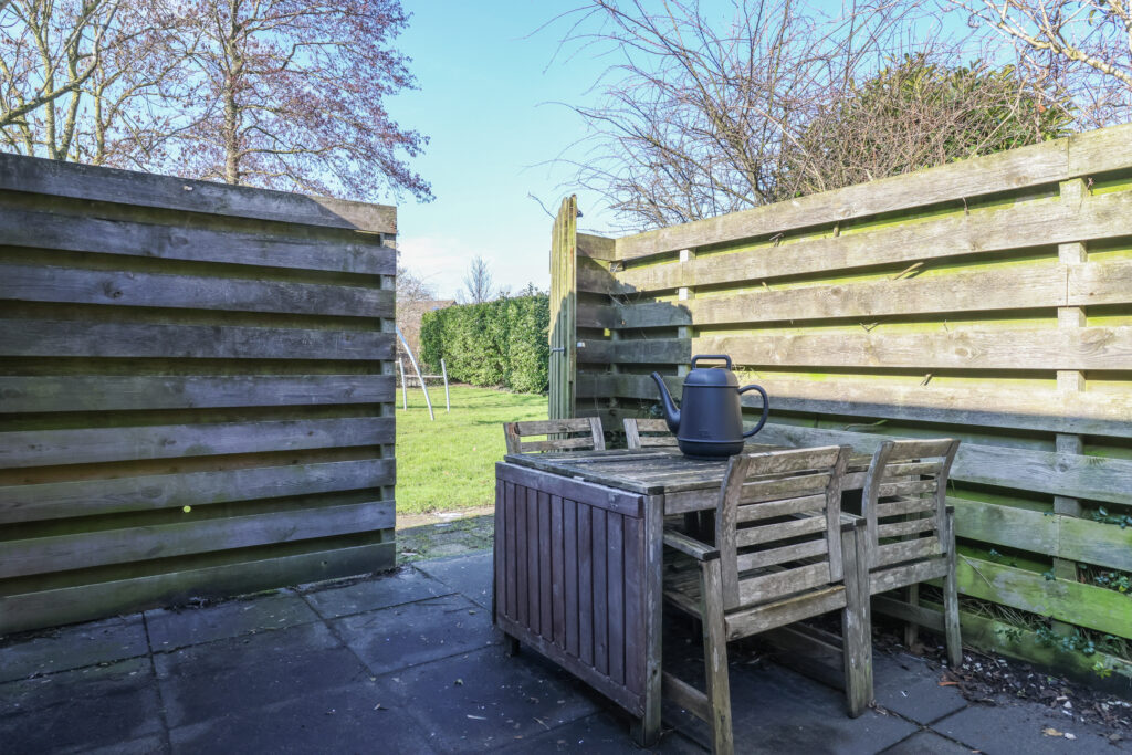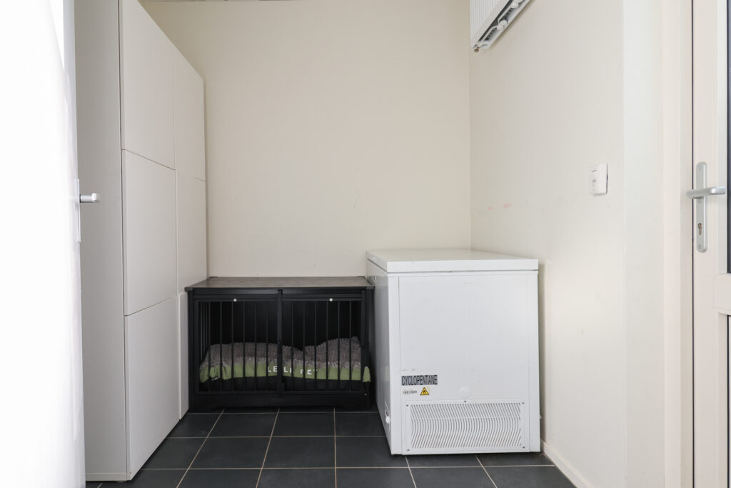 Begane grond: Binnenkomst in ruime hal voorzien van toilet met fonteintje, trapopgang en doorgang naar de woonkamer. Open woonkamer met zicht op de tuin en open keuken v.v. diverse inbouwapparatuur en ruimte voor een eethoek. Vanuit de hal toegang tot de bijkeuken met wasmachineopstelling en extra bergruimte.