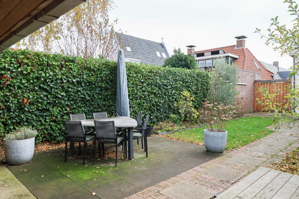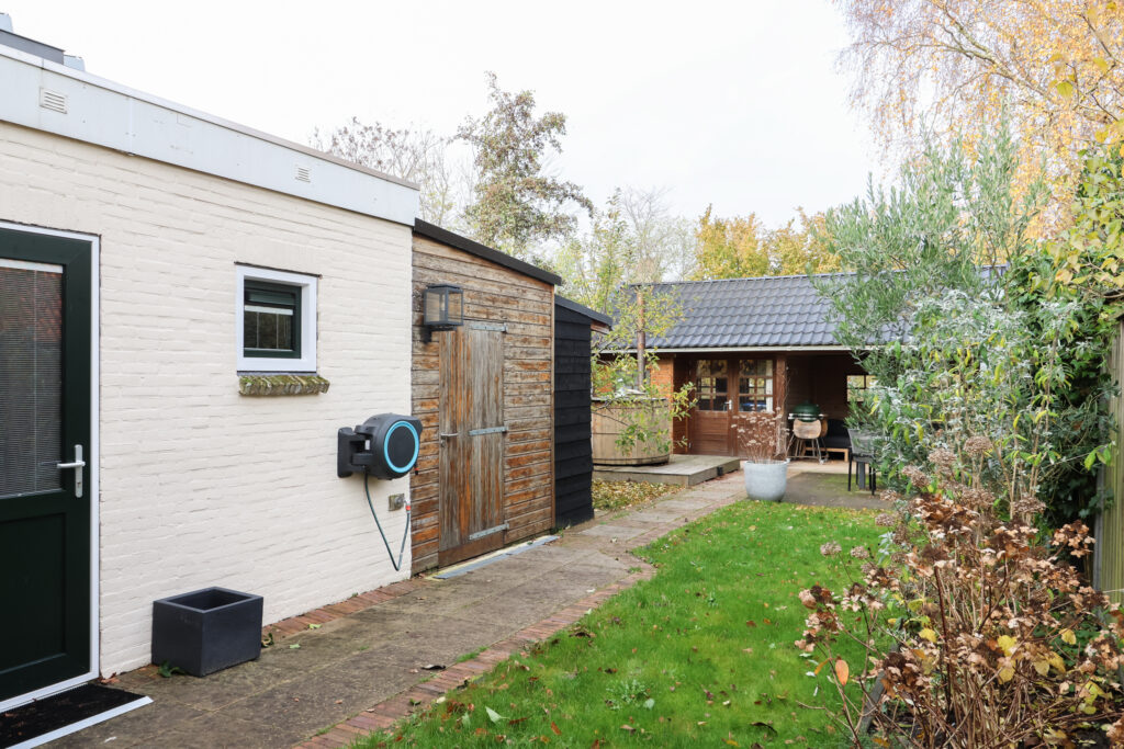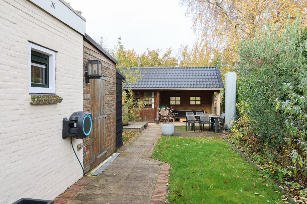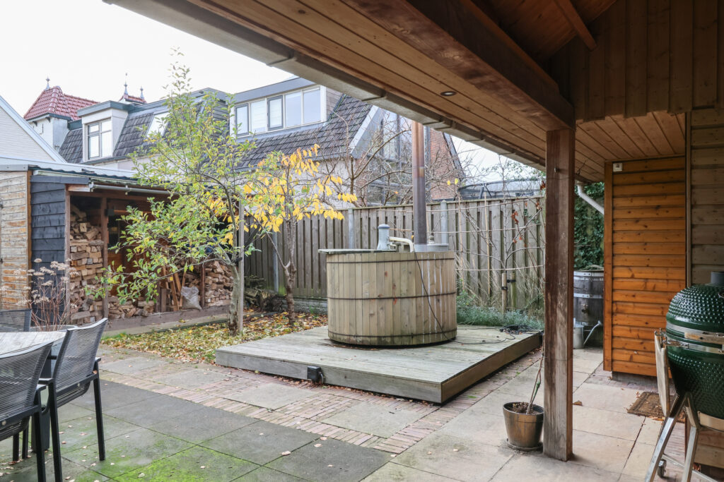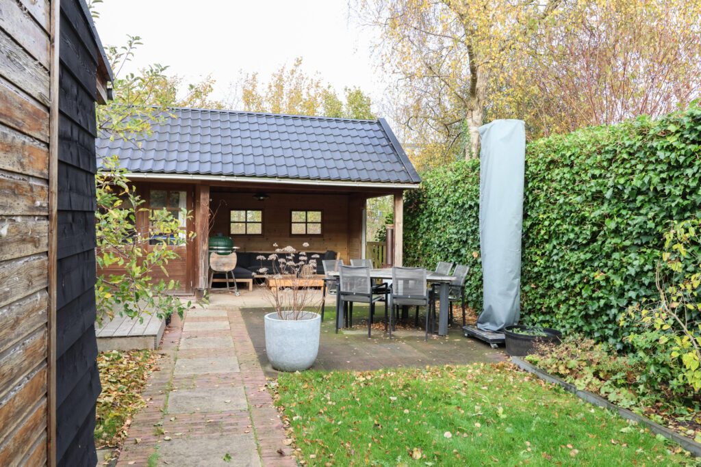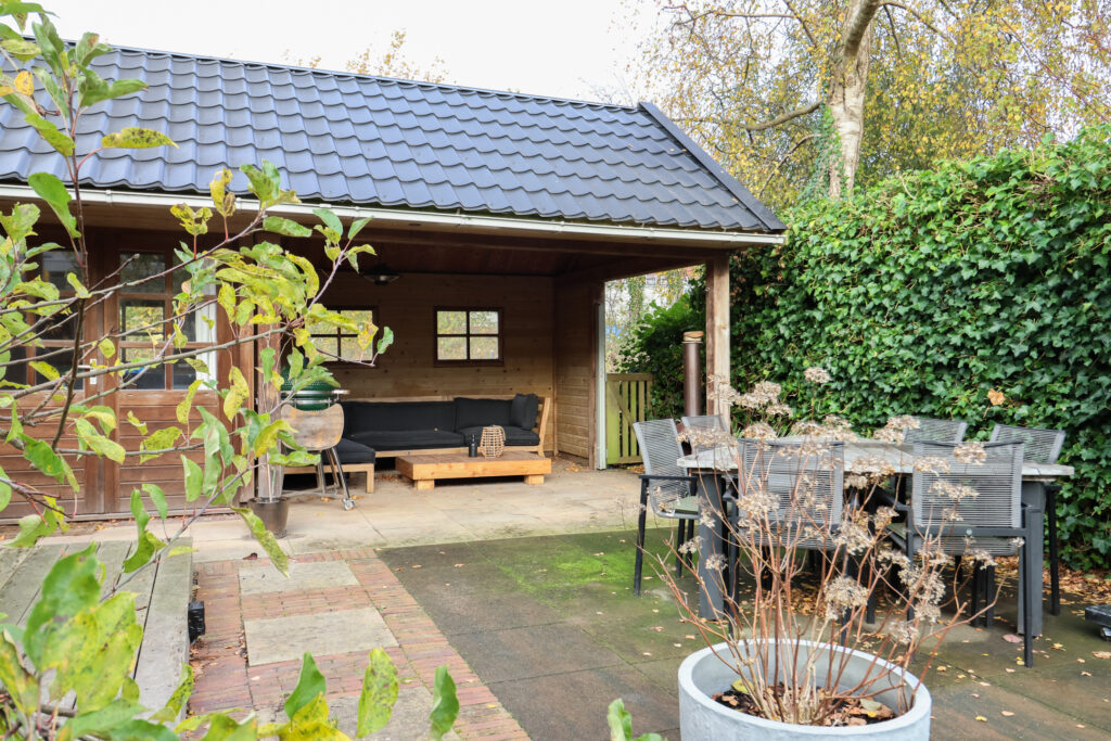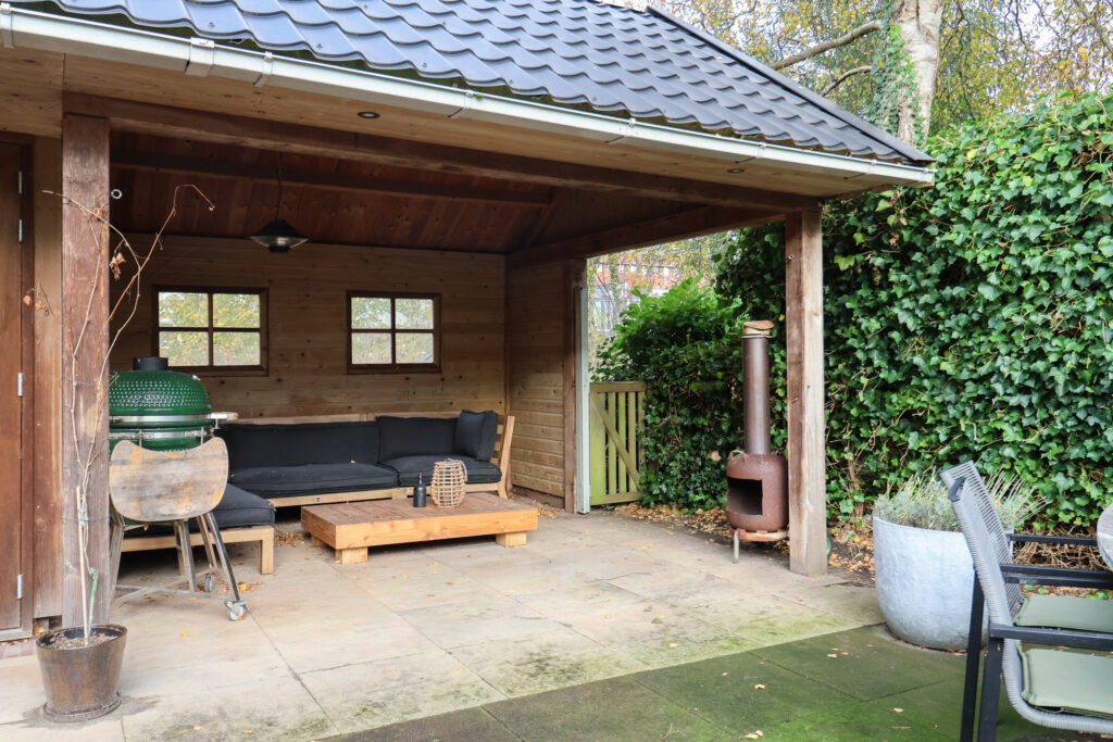 Aan de achterzijde van de woning ligt de diepe, beschutte tuin met zelfstandig gastenverblijf dat van alle gemakken is voorzien.