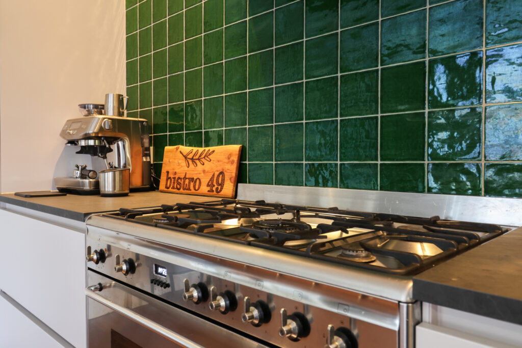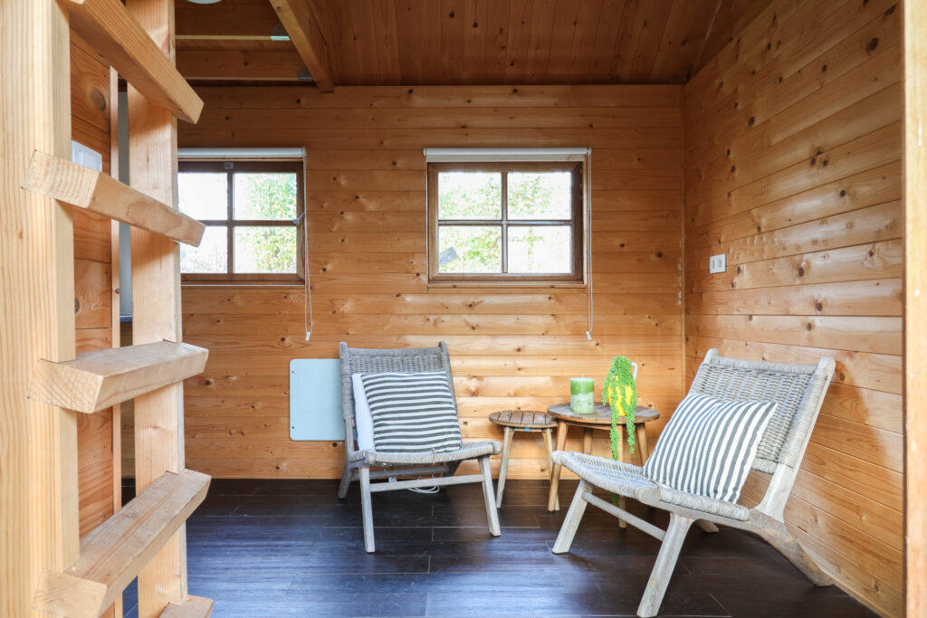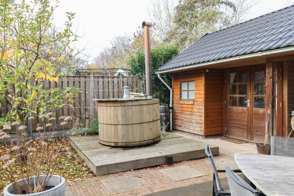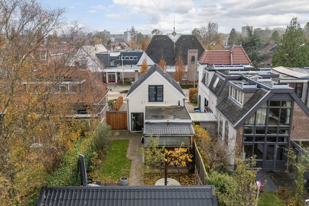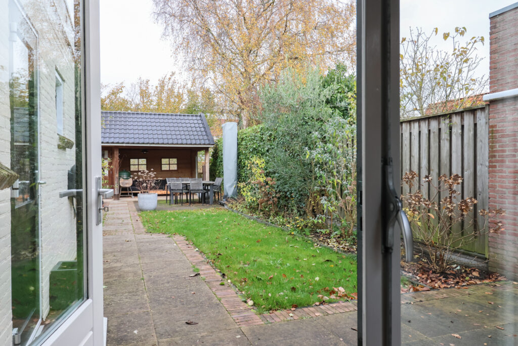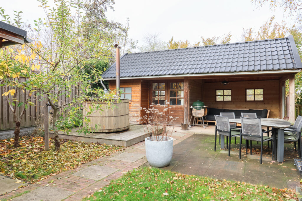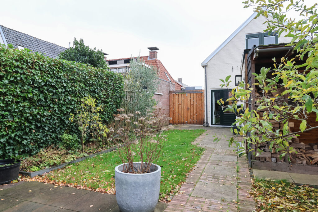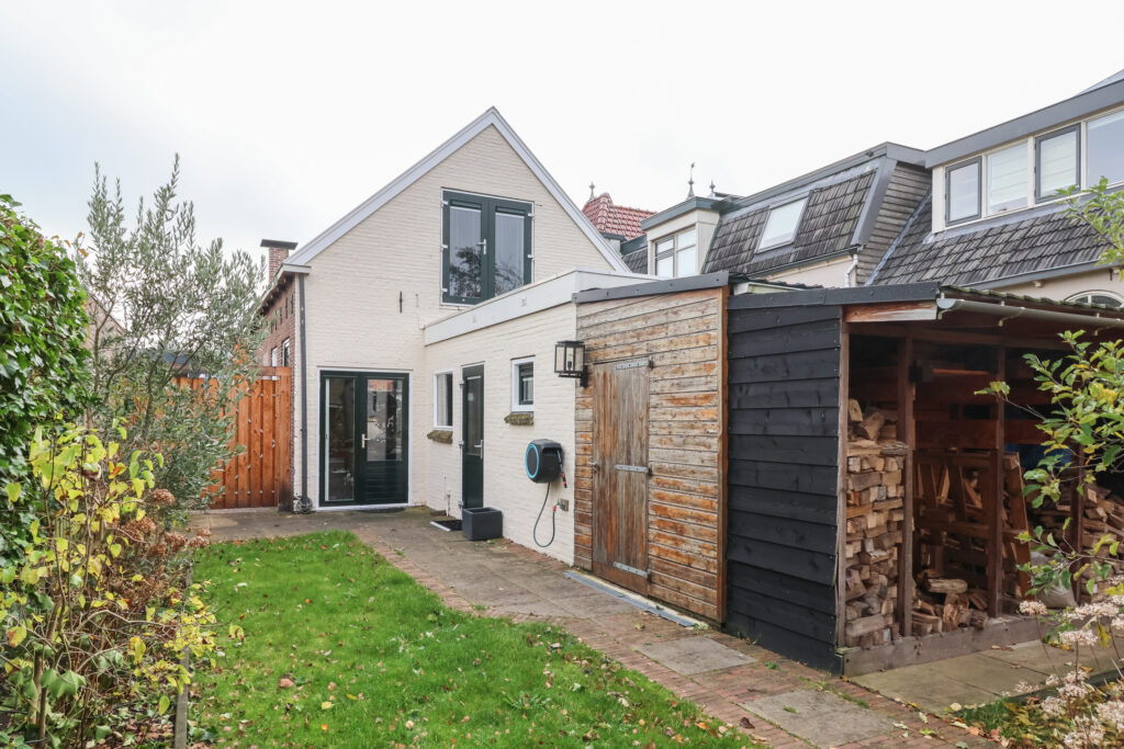 Aan de achterzijde van de woning ligt de diepe, beschutte tuin met zelfstandig gastenverblijf dat van alle gemakken is voorzien.