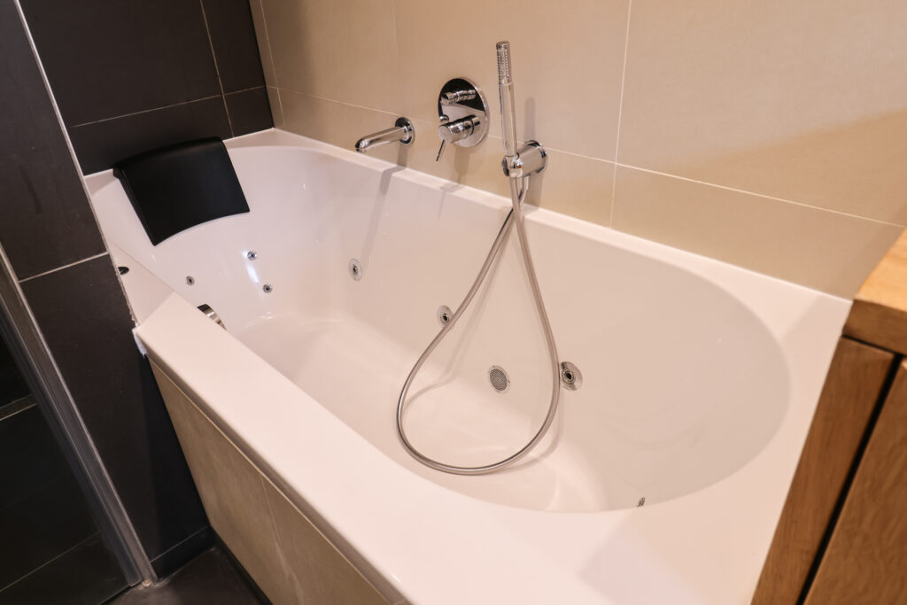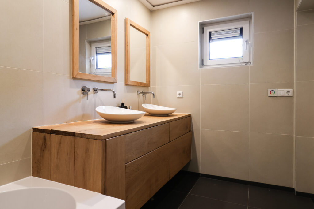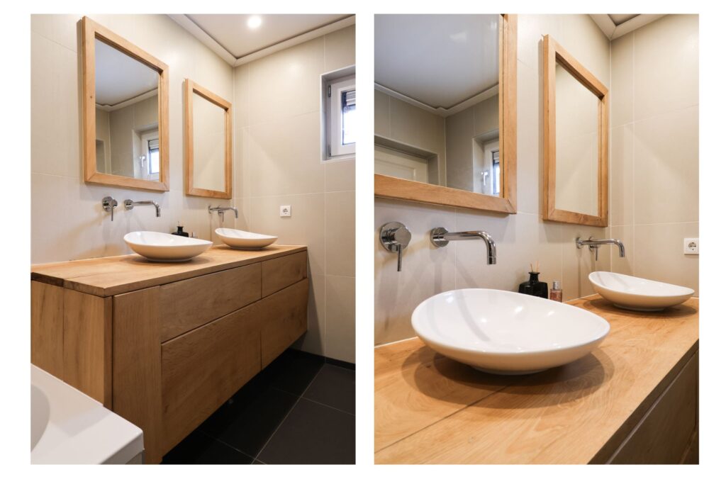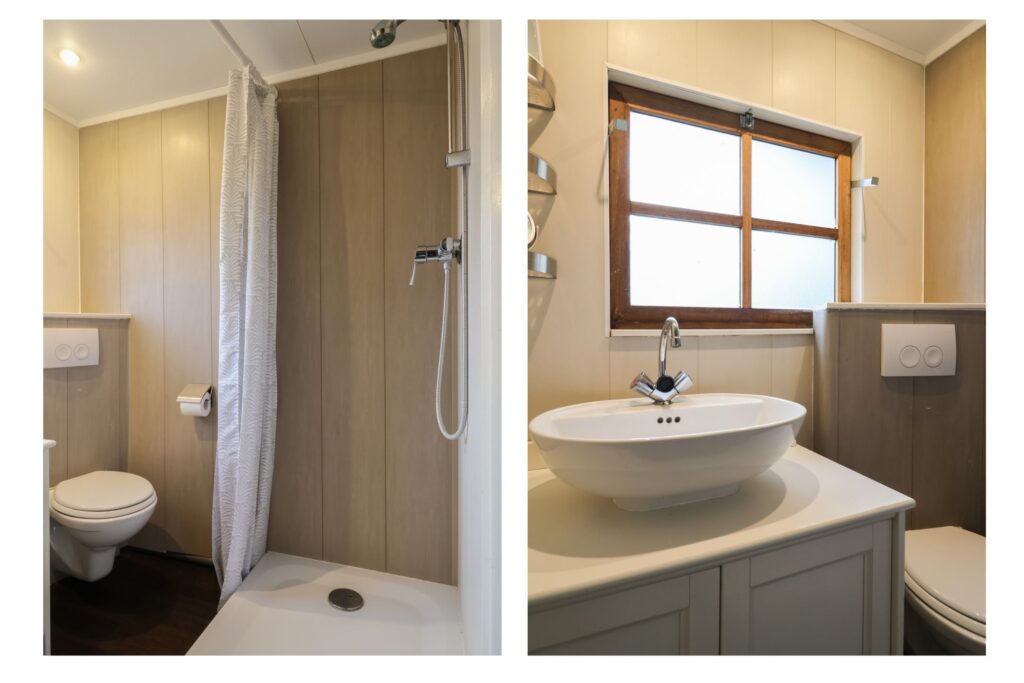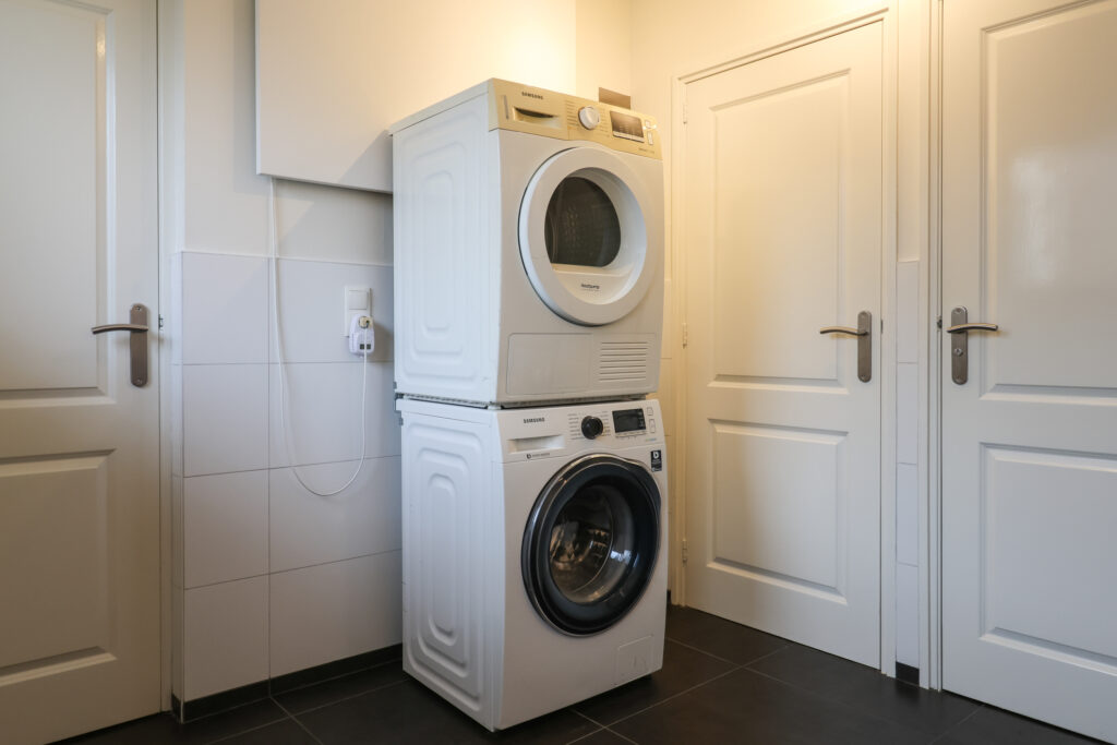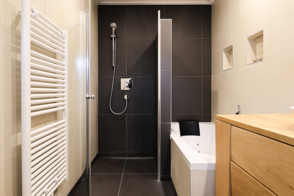 Vanuit de keuken is er toegang tot de bijkeuken met cv-opstelling en toilet. Aangrenzend vinden we de eigentijdse badkamer, uitgerust met een ligbad, douche en wastafel, waarachter zich nog een separate berging bevindt.