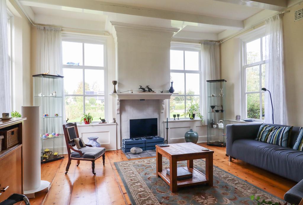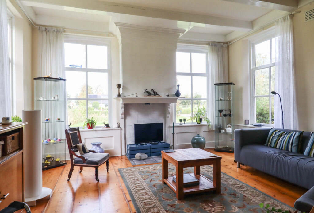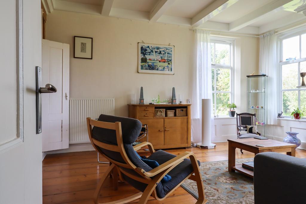 Het voorhuis van deze woonboerderij op mooie locatie gelegen aan zgn. lintbebouwing, net buiten de bebouwde kom.