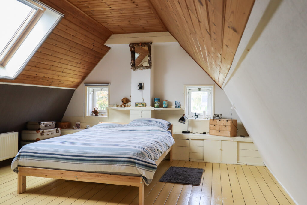 1e verdieping: overloop, bergkamertje met v.w.t. en 4 slaapvertrekken.