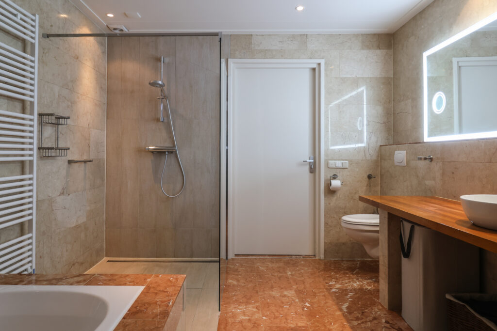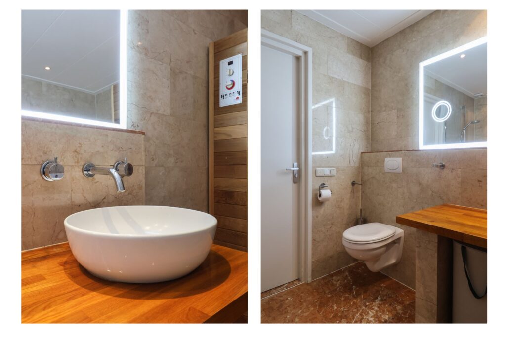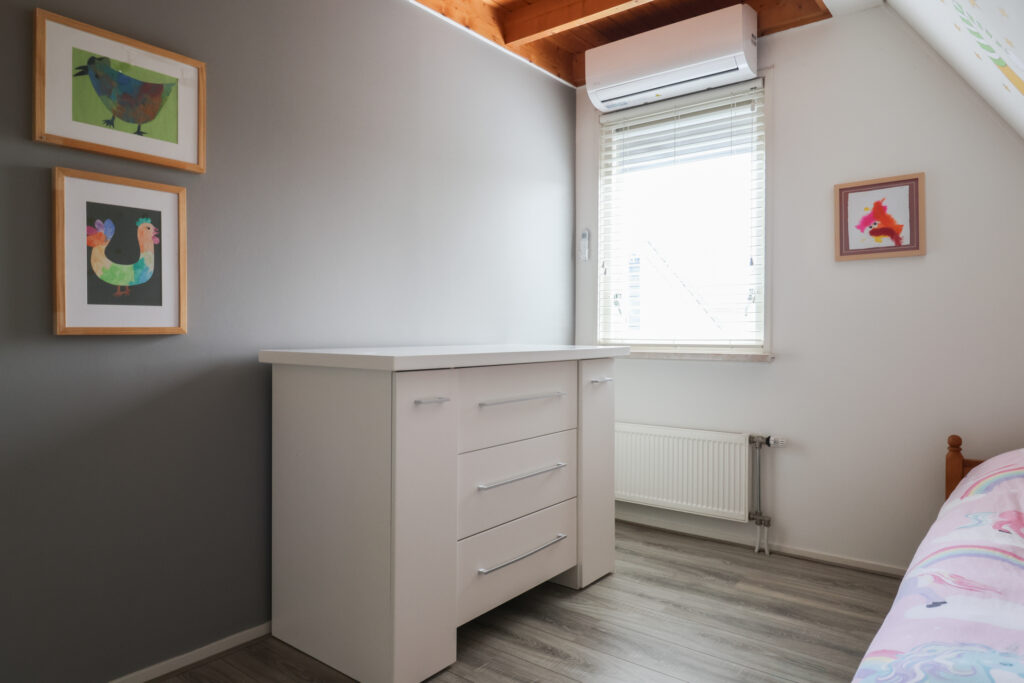Vanaf de overloop zijn drie royale slaapkamers bereikbaar, waarvan één is voorzien van een praktische kastenwand. Daarnaast bevindt zich op deze verdieping een tweede badkamer, uitgerust met een ligbad en een wastafel.