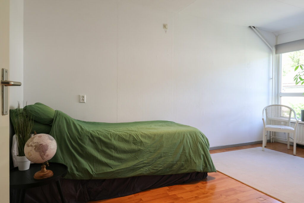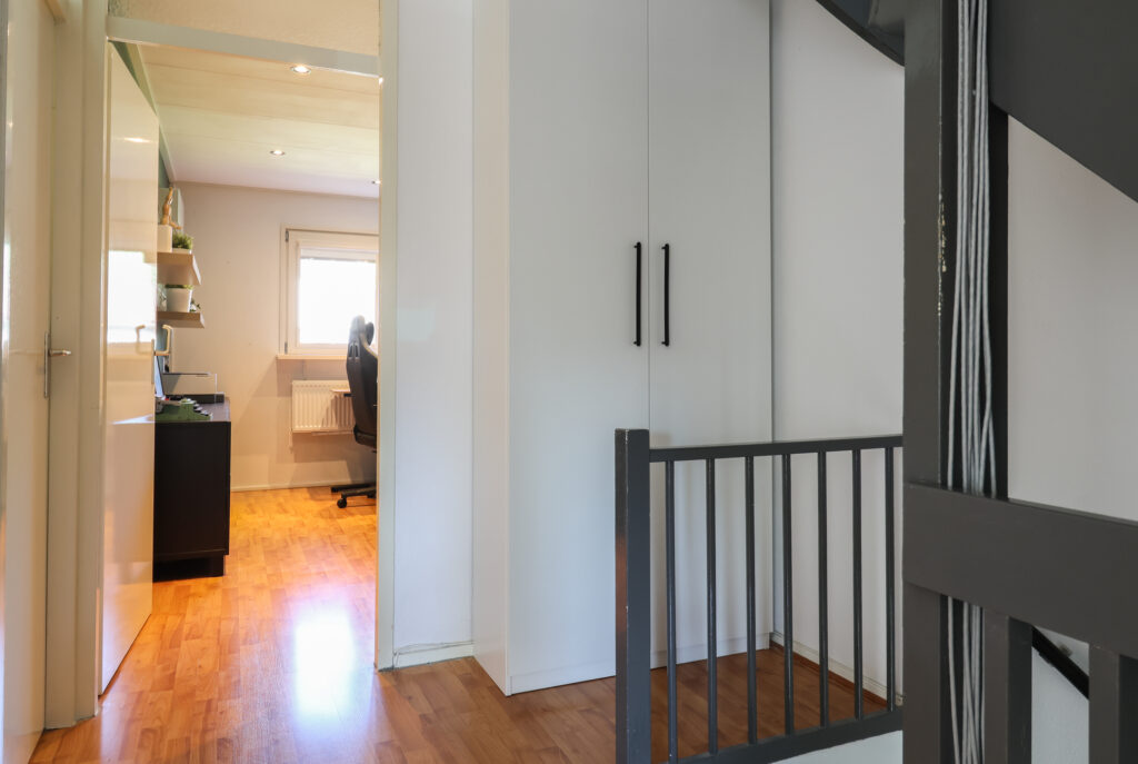Eerste verdieping: Vanaf de overloop zijn drie slaapkamers en de badkamer bereikbaar. De vaste trap leidt naar de zolderverdieping, welke praktisch als extra slaapkamer in te richten is.