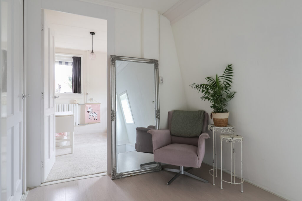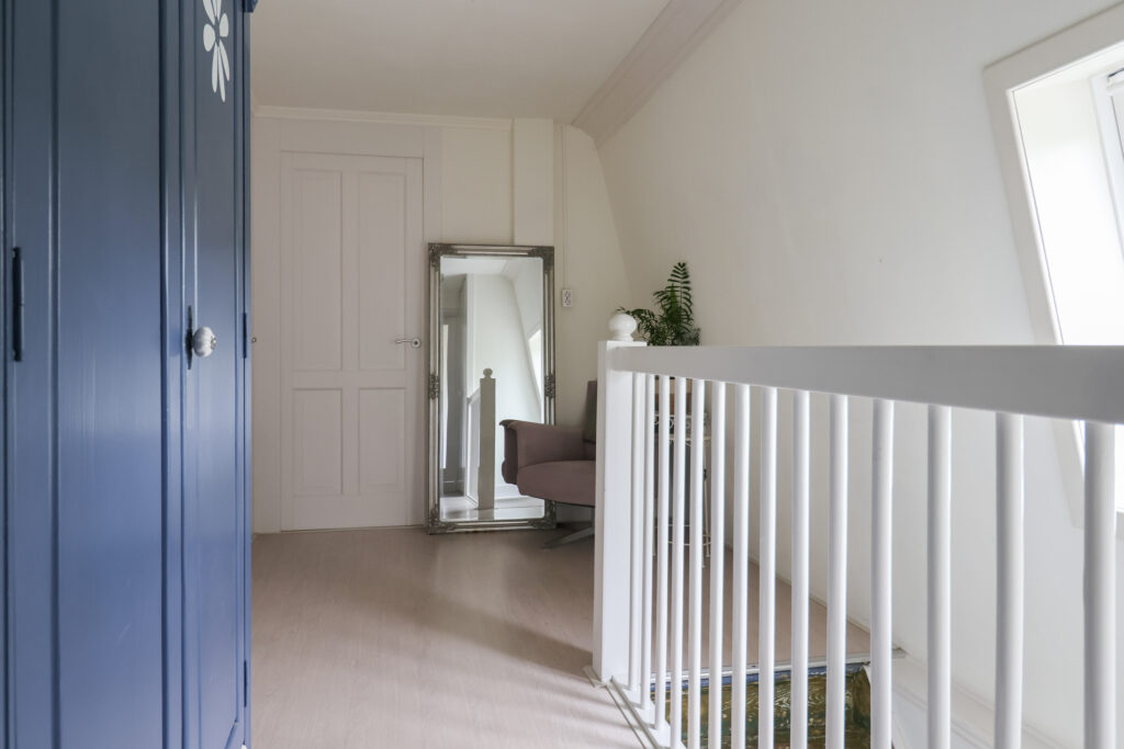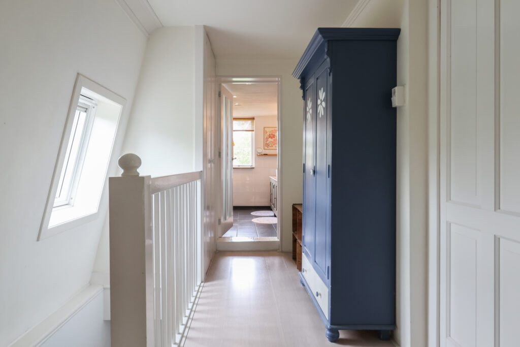 Eerste verdieping: Overloop met toegang tot drie ruime slaapkamers en badkamer met toilet, inloopdouche, dubbele wastafel en wasmachine opstelling. Toegang tot de zolder middels vaste trap.