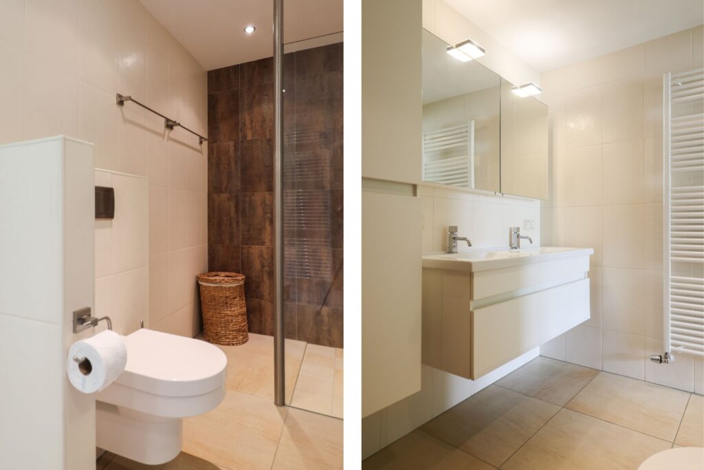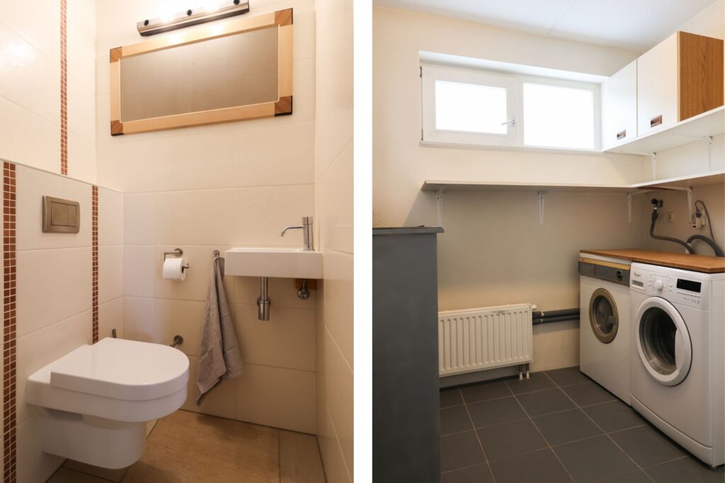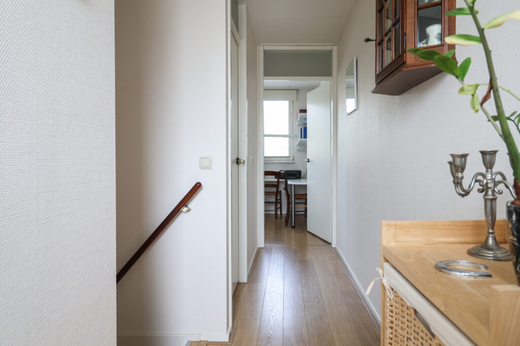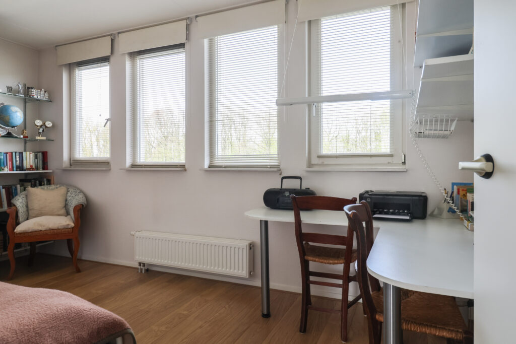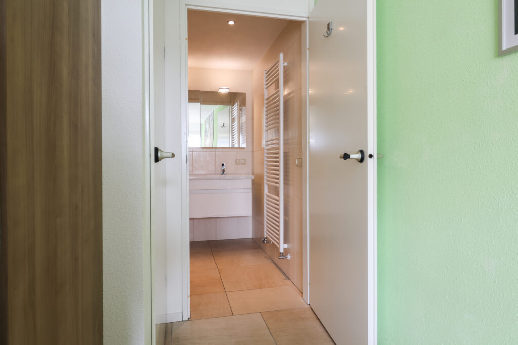 1e verdieping: overloop met 2e badkamer v.v. douche, wastafel en 3e toilet en tevens 2 slaapkamers, waarvan 1 toegang tot een berging en de slaapkamer aan de achterzijde wederom een prachtig uitzicht heeft.