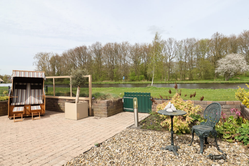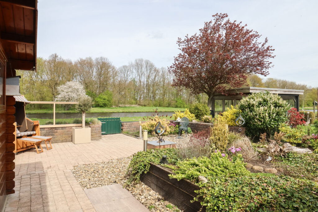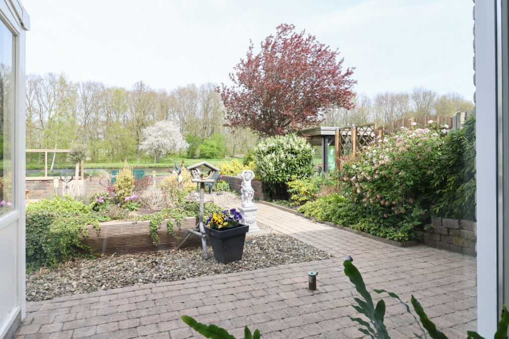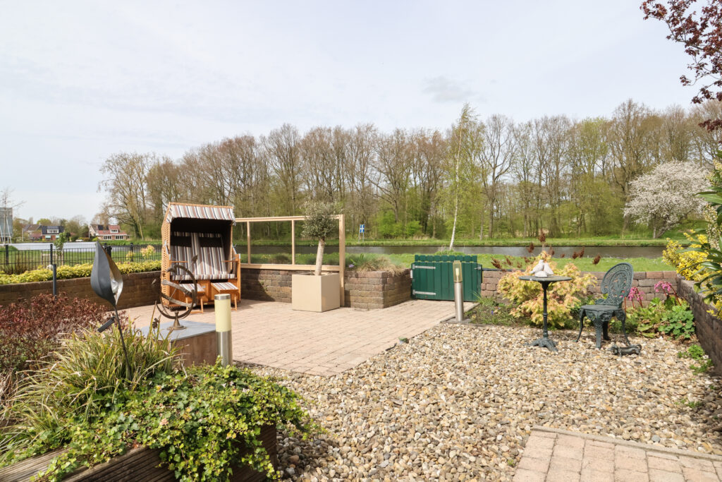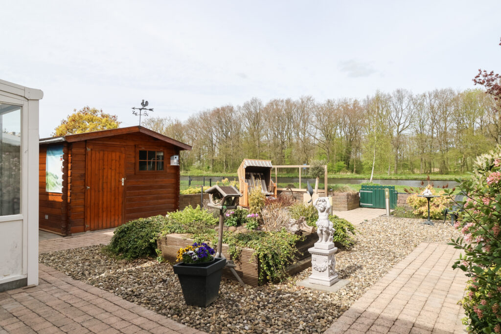 Tuin: De achtertuin is fraai aangelegd en biedt een fijne afwisseling van zonnige en schaduwrijke plekjes. Daarnaast beschikt de tuin over een praktische houten berging en een achterom naar de voorzijde. Het uitzicht blijft werkelijk fanatisch: een groenrijke omgeving met water en voorbijvarende boten.