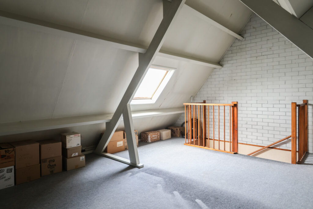 Tweede verdieping: ruime zolder met dakraam, bereikbaar via een vaste trap.