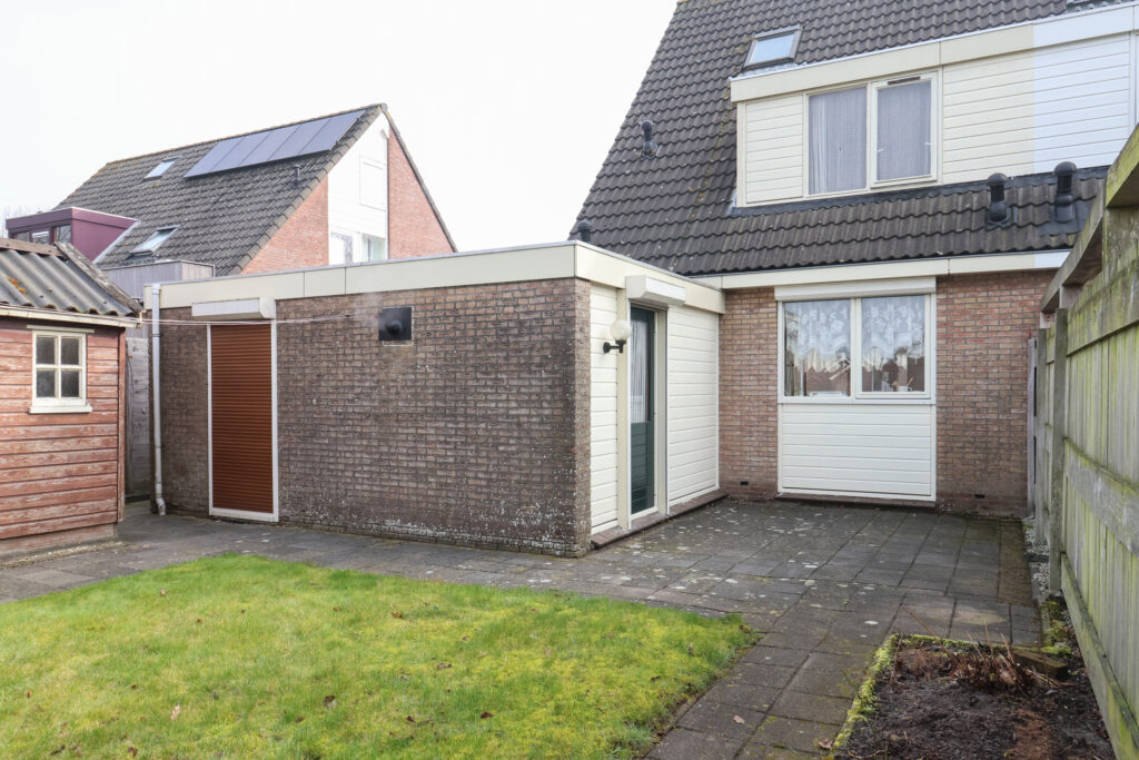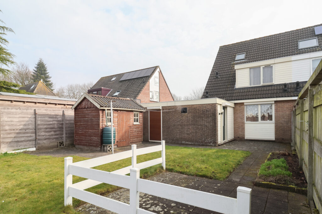 Tuin: De achtertuin ligt beschut op het zonnige westen en beschikt over een (fietsen)schuur en heeft een achterom. Aan de voorzijde een eigen oprit geschikt voor meerdere auto’s.