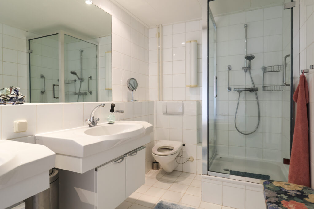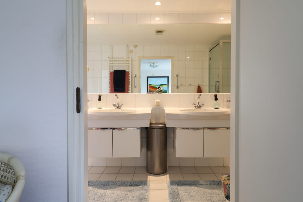 Eerste verdieping: Overloop, 3 slaapkamers en twee badkamers voorzien van douche, toilet en wastafel. Zowel aan de voorzijde als achterzijde een balkon.