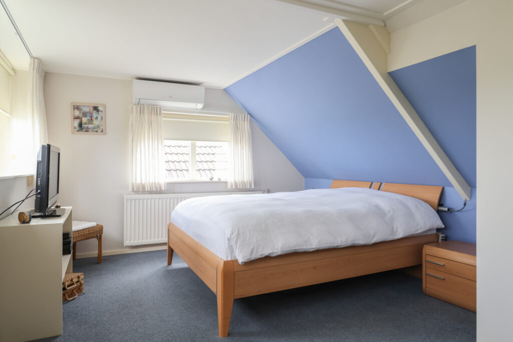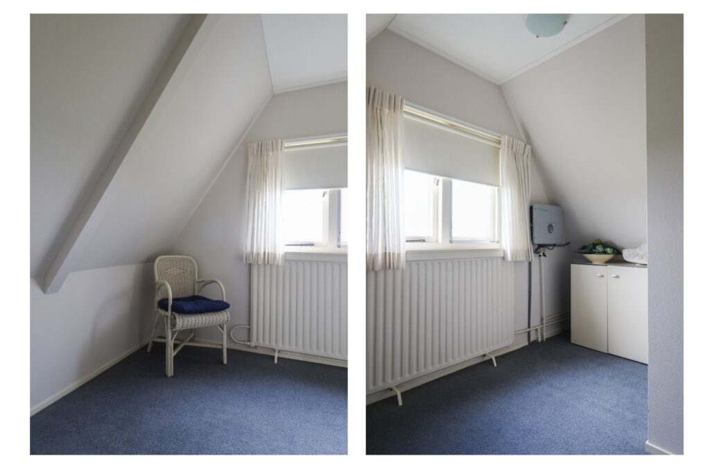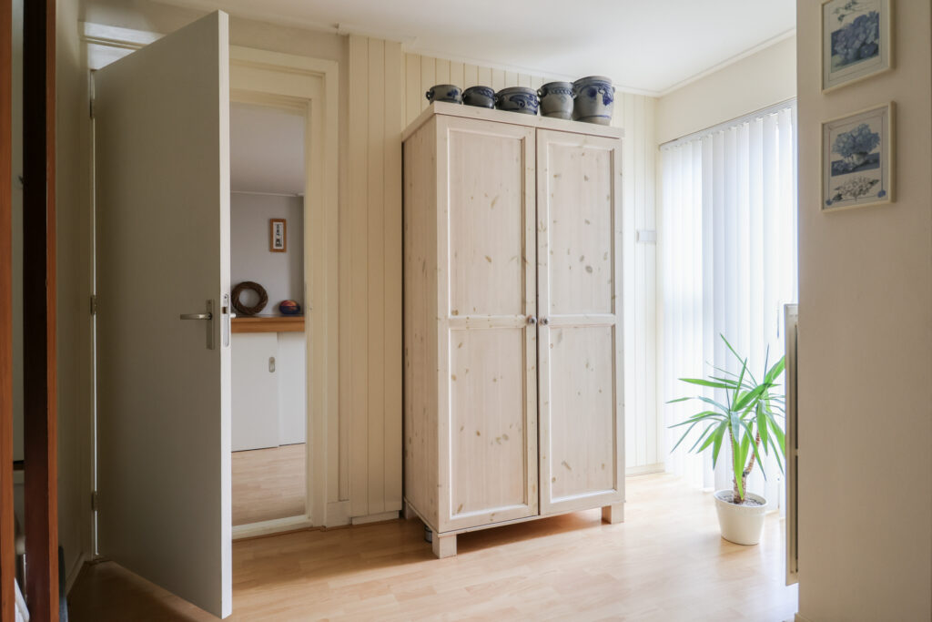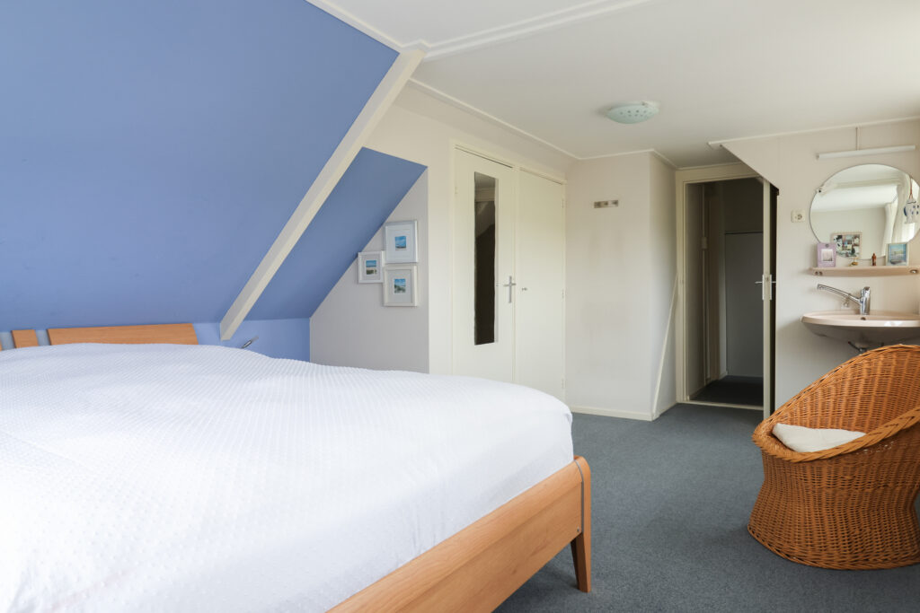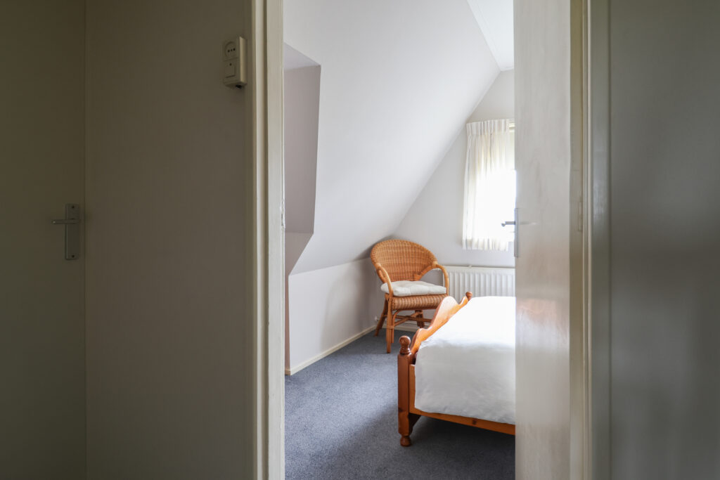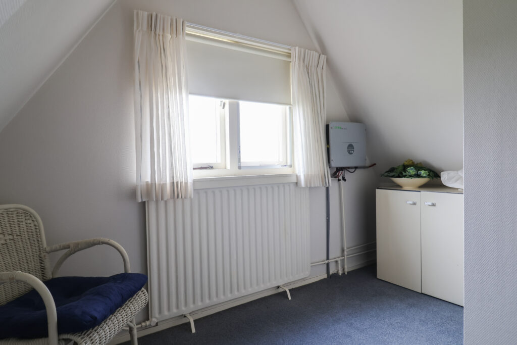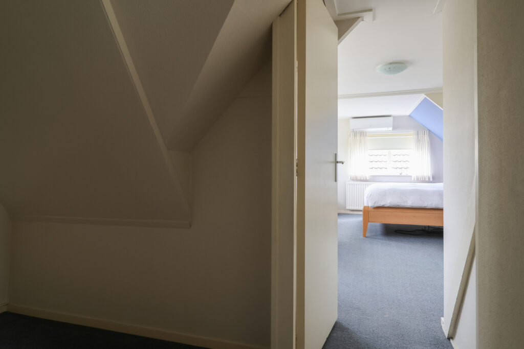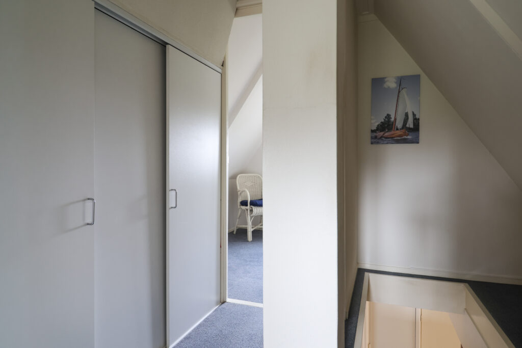 1e verdieping: overloop met bergkast en 3 slaapkamers, waarvan de grootste kamer is voorzien van bergkast en wastafel.