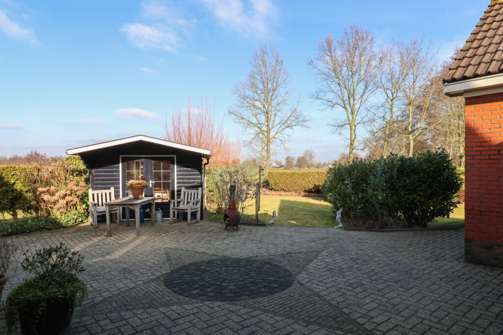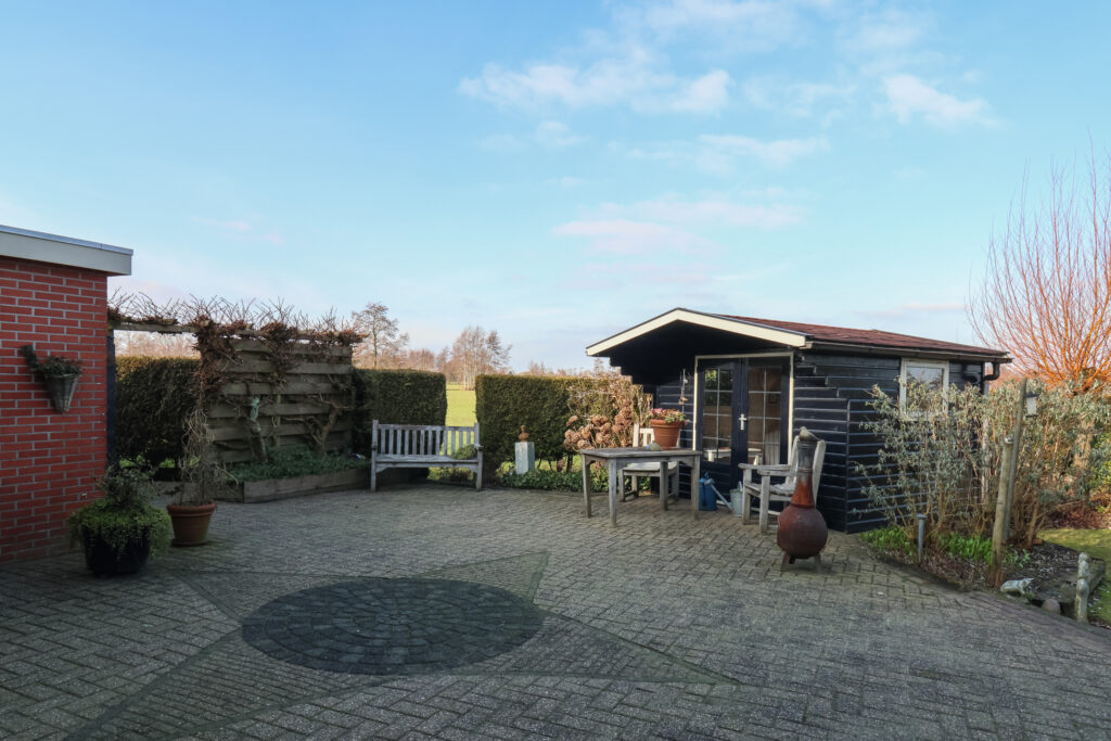 Tuin: Rondom de woning ligt een fraai aangelegde, groene tuin die voelt als een eigen stukje buitenleven. Hier vind je meerdere gezellige zithoekjes, bergingen en houtopslagen. Het perceel wordt aan alle zijden omringd door sloten, waardoor het aanvoelt als een eigen schiereiland midden in het landschap. De tuin is zo ingericht met een fijne combinatie van weids uitzicht en optimale privacy.