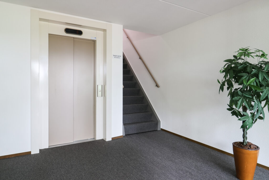 Entree: Via de centrale entree kom je in de nette trappenhal met liftinstallatie en toegang tot de inpandige berging.