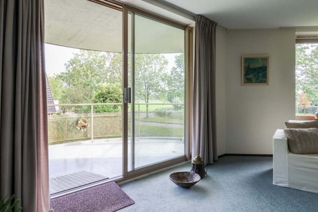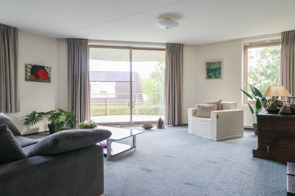 Het appartement beschikt over een entree/hal met toilet voorzien van fonteintje. De lichte en royale doorzonwoonkamer biedt een prachtig uitzicht over de landerijen en geeft toegang tot het balkon, waar je in alle rust van de omgeving kunt genieten. Een half open keuken. Verder zijn er twee slaapkamers aanwezig en een complete badkamer met douchecabine, dubbele wastafel, een tweede toilet en een ligbad.