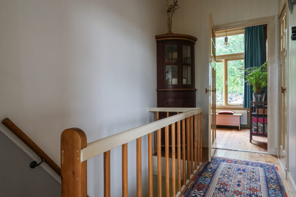 Niet alleen door de statig recht opgetrokken gevel ademt de woning één en al sfeer, ook bij binnenkomst springen de karakteristieke details van deze woning in het oog. Het stijlvolle kleurenpalet dat gebruikt is in de woning draagt hieraan bij, maar ook de elementen zoals kamer en suite, hoge plafonds en originele schoorsteenmantel zorgen voor een authentiek gevoel, zonder in te leveren op de gemakken van nu. De woning beschikt daarnaast over een fijne achtertuin, sfeervolle voortuin en drie slaapkamers.