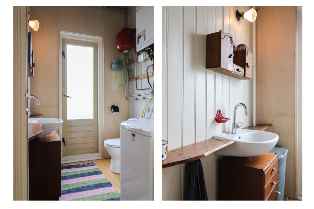 Overloop, 3 slaapkamers, opbergruimte in inbouwkasten, ruimte met cv ketel, tweede toilet en wastafel, deur naar plat dak.