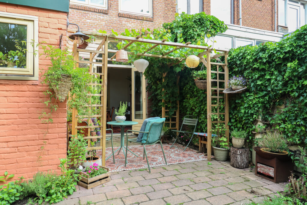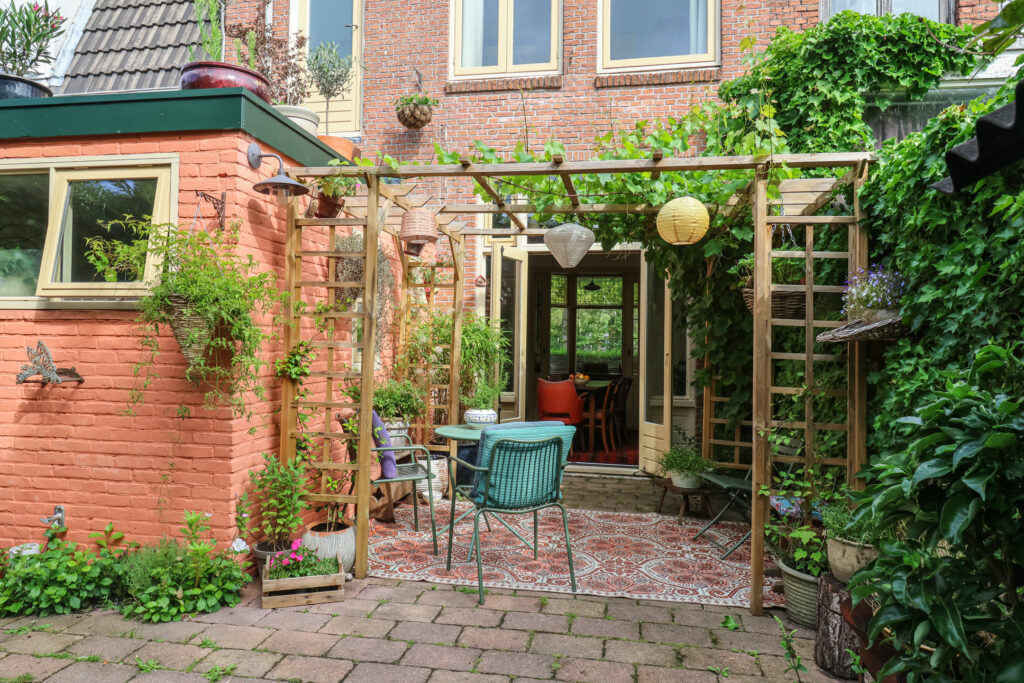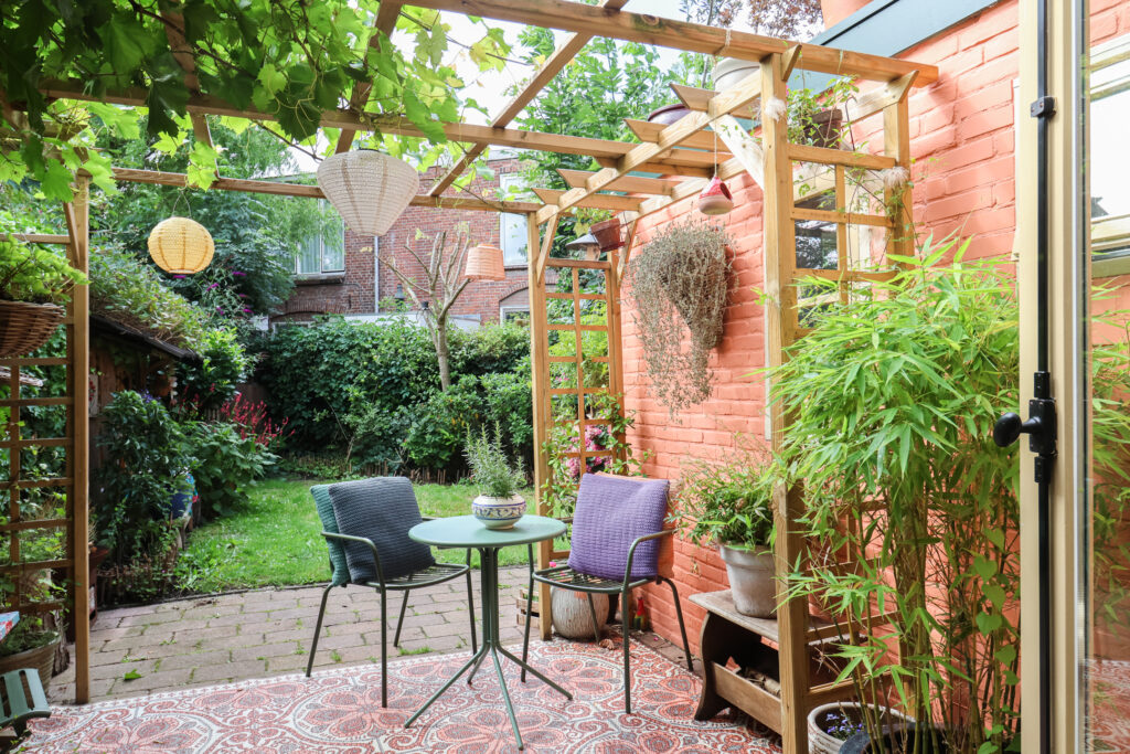 Heerlijke beschutte achtertuin op het zonnige zuiden met terras.