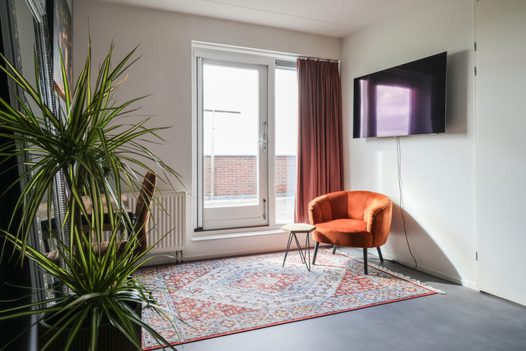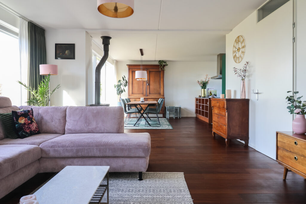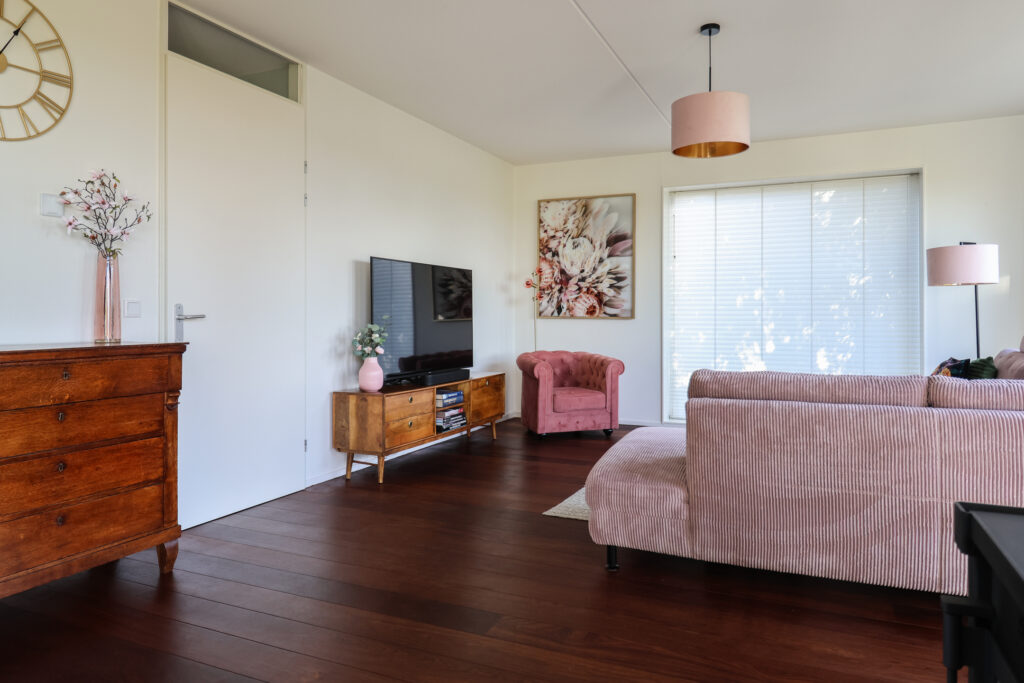 - Woonkamer voorzien van hardhouten vloer