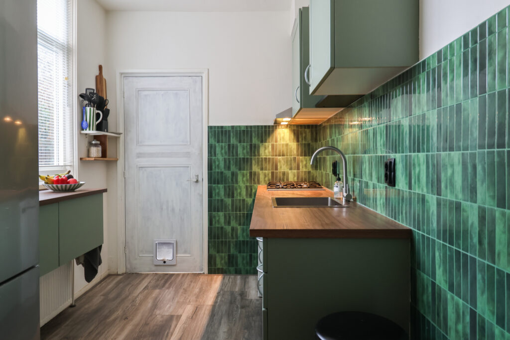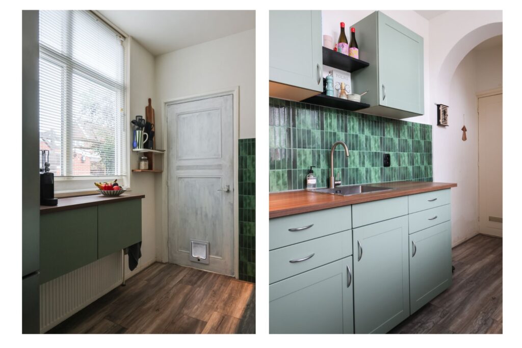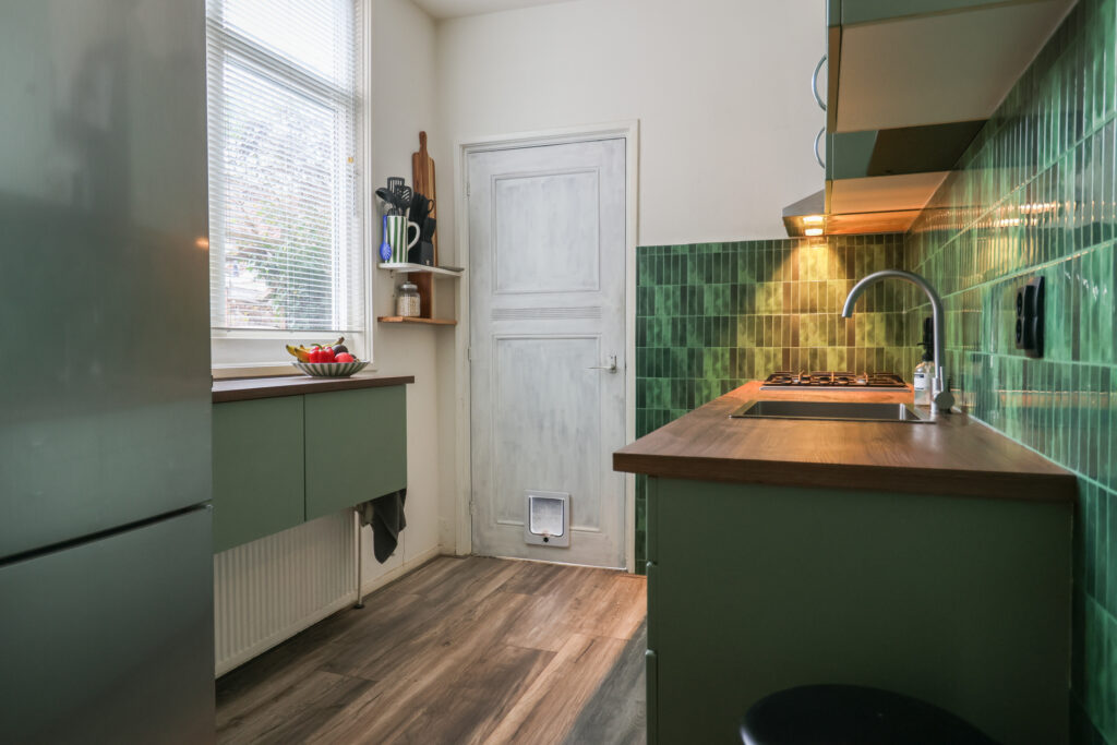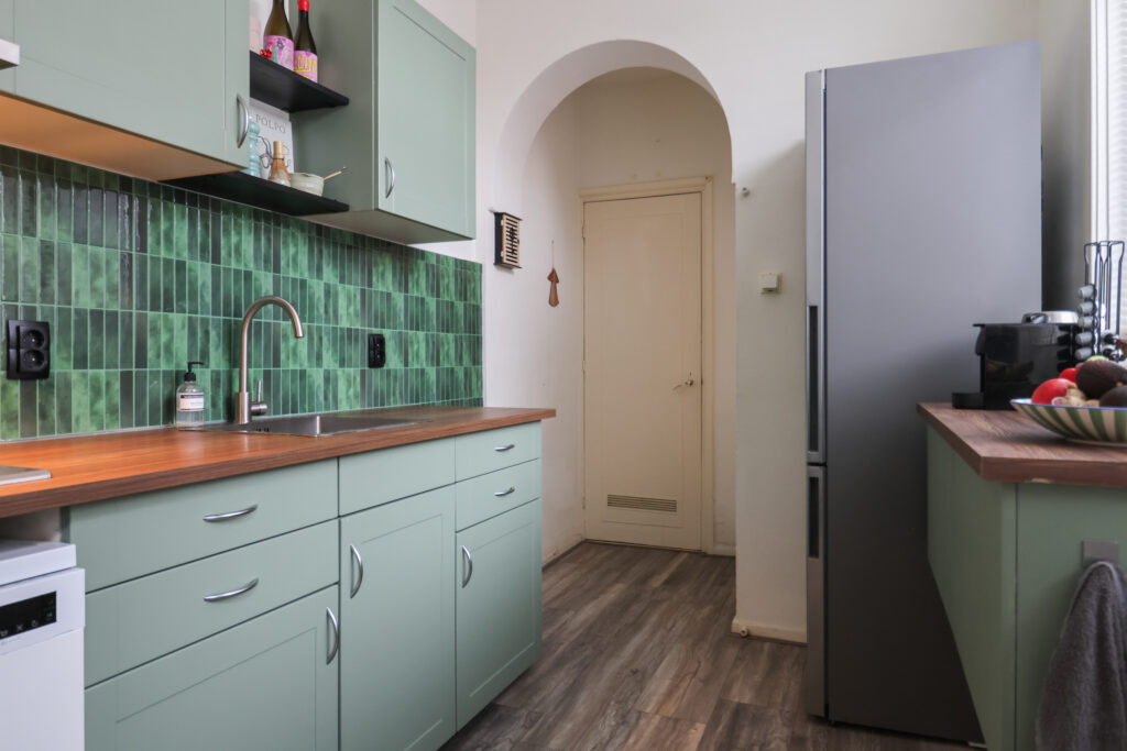 - Recent opgefriste keuken met nieuw keukenblad, wasbak en schilderwerk
